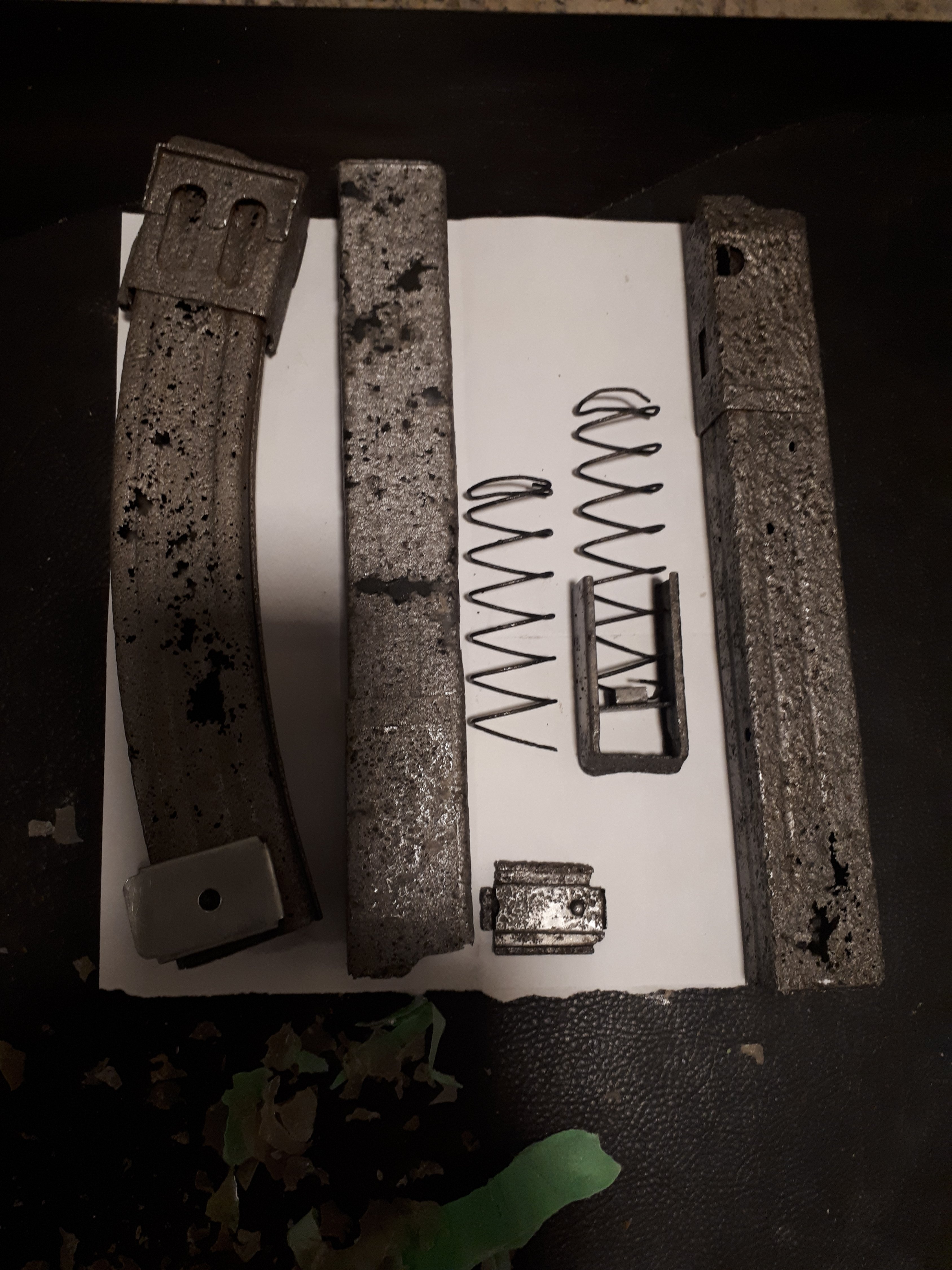 Всех с наступающим Новым Годом. Решил потренироваться на убитом маге мп40.так как у меня 3 шт.купил прозрачную эпоски. Обклеил.залил. вышло очень не плохо.два других еще думаю.как сделать. Возможно частичная заливка.для веса.так как крышки и подаватели есть. Остатки пружины мп.была двойная в копаном.очистил до полного высыхания.излишки сошли как шкура. Для убитых предметов, вполне как вариант.можно потом шпаклевать.или типа арт.дизайн)) оставить как есть.Всем мира и добра в новом году. С ув.