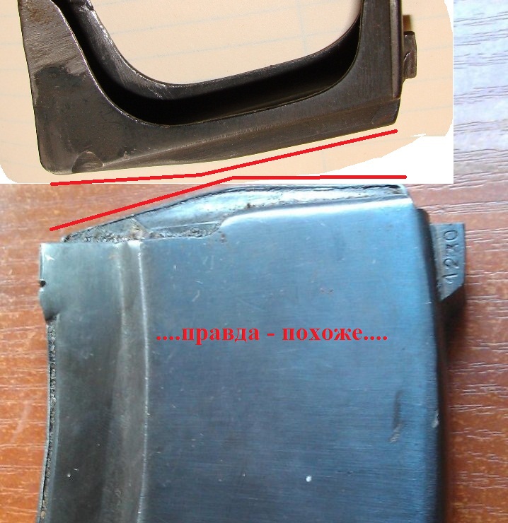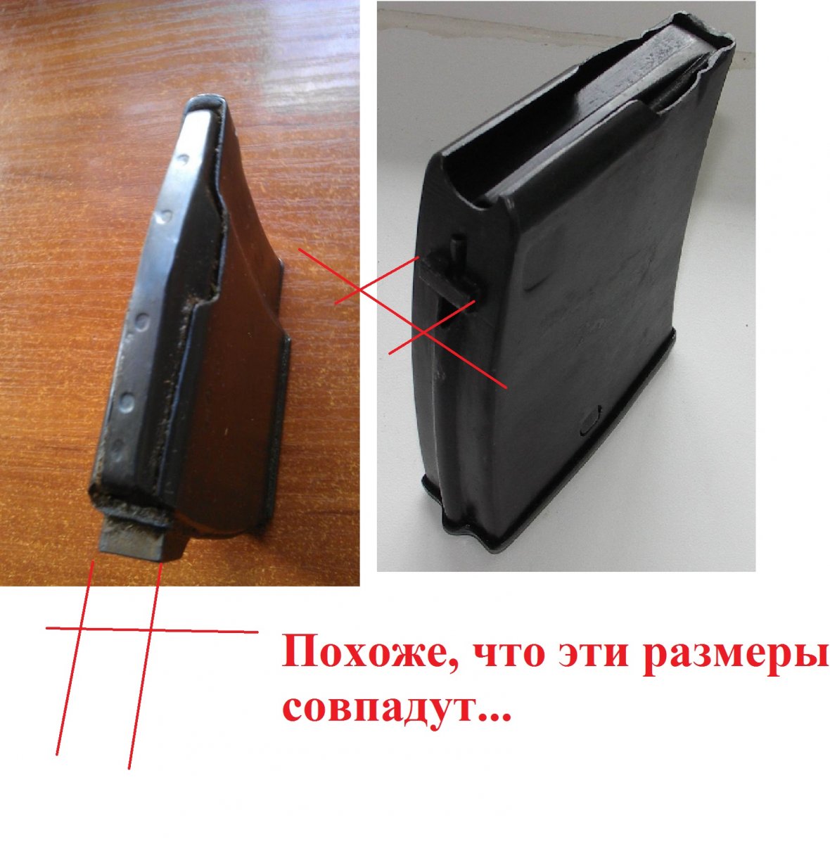 В порядке бреда: а не попытка ли это приторочить съемный магазин к ВМ? Какой смысл мастерить однорядный магазин к СВТ, снимать с нее детали? А зазоры по бокам? Тогда нужна подгонка дерева или шахты магазина, а то будет болтаться, как говно в проруби