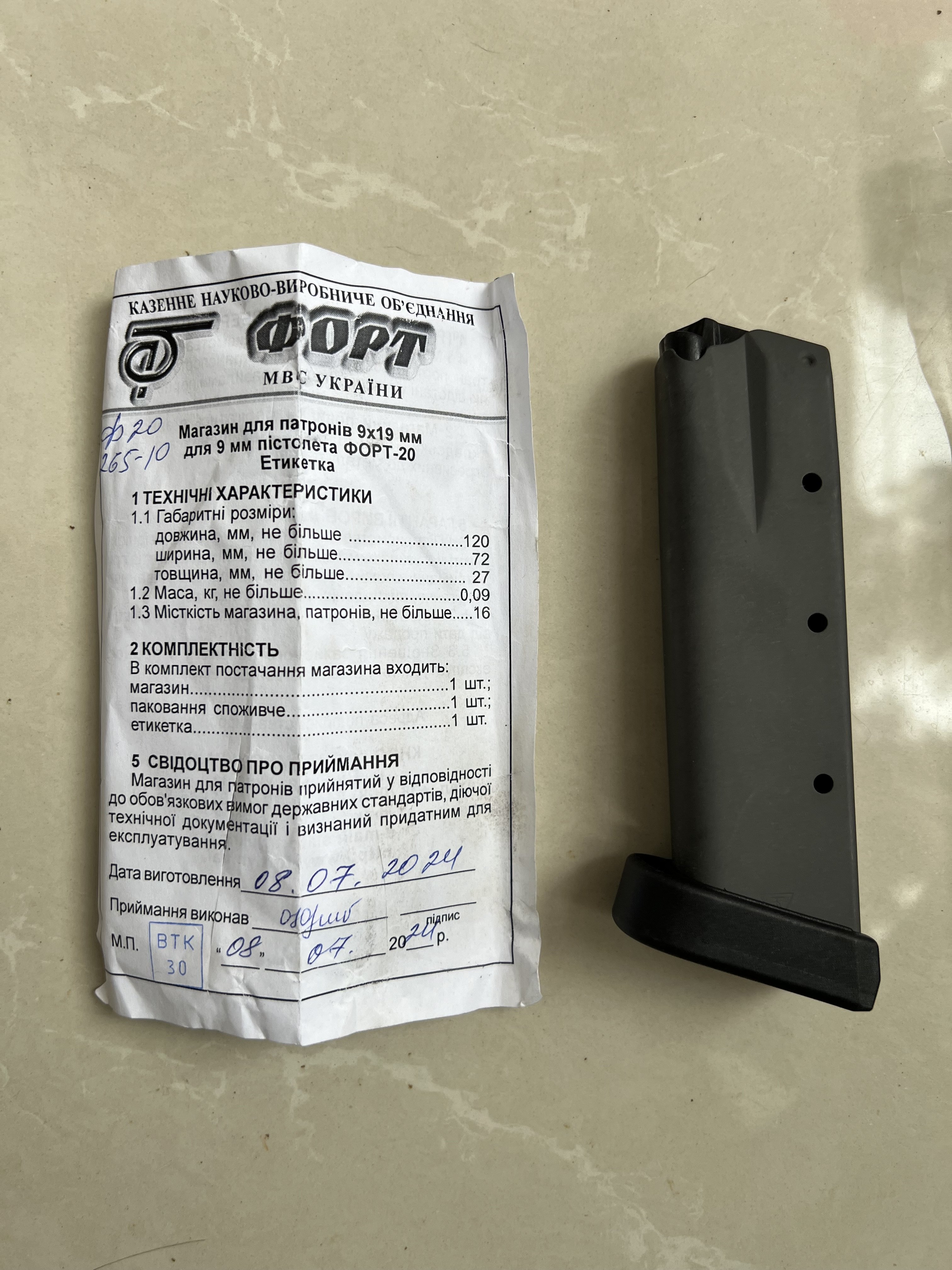 Продам магазини пістолетні Форт-20 калібр 9х19. Вся інофрмація вказана на етикетці. Магазини нові, один дістався з упаковки, але не використовувався. Ціна за один 3000 грн. Вислухаю пропозиції по ціні.