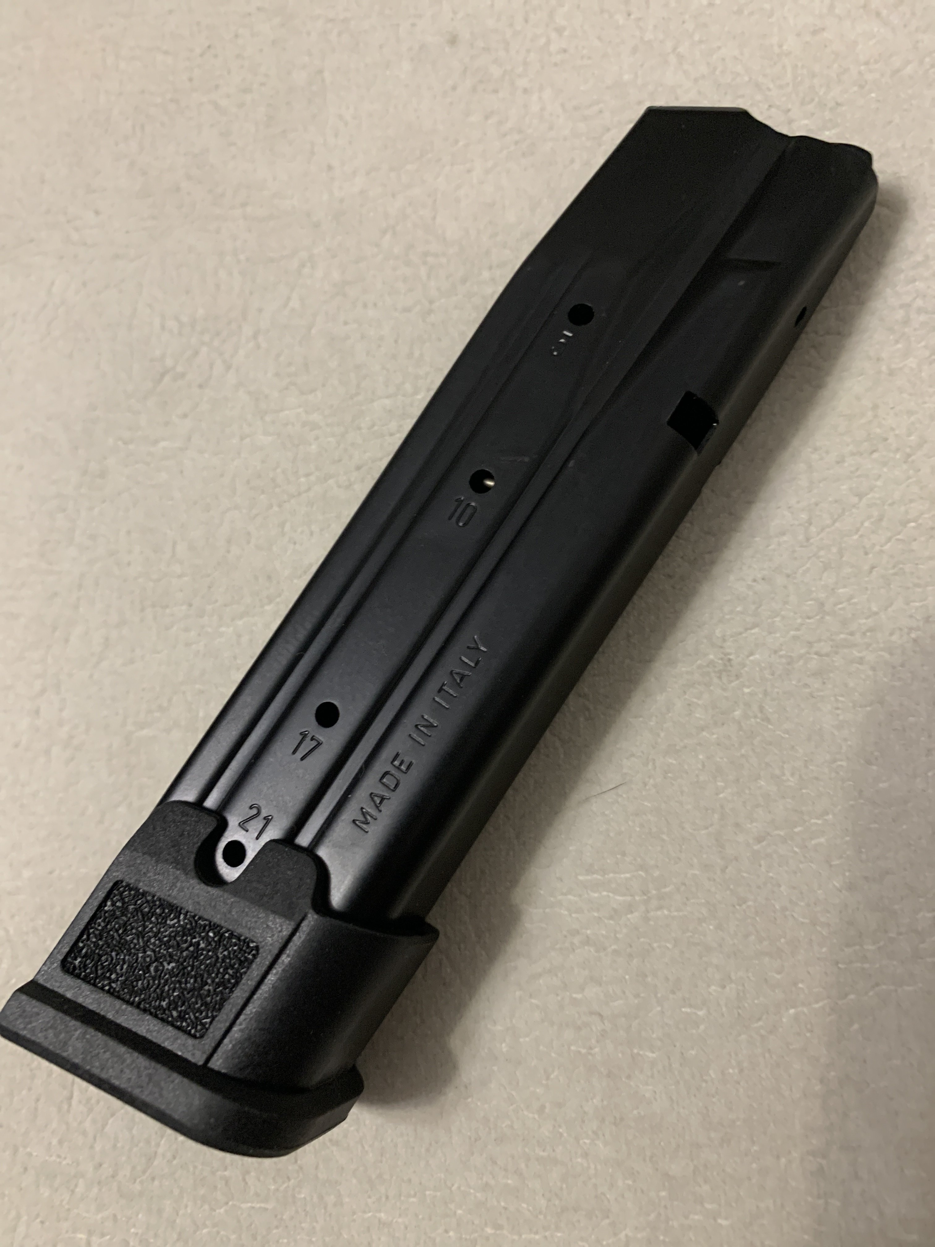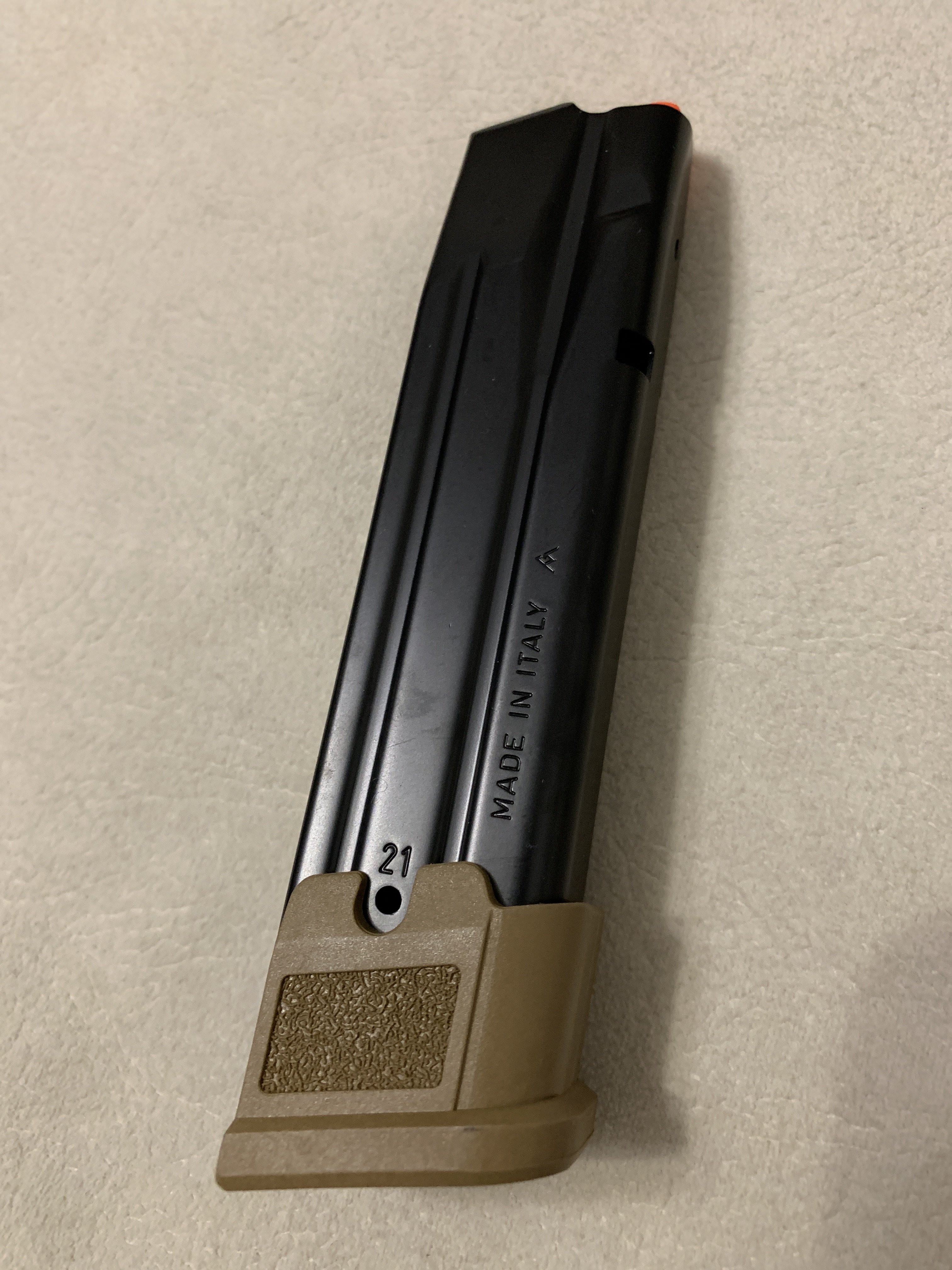 Вітаю, чи можна замовити : Не частий магазин на 21 патрон, з М17(18) Помаранчевий подавач, і повна індикація кількості набоїв Ціна 4500 грн Магазин з алюмінієвою пяткою +2 (17+2). Ціна 4500 грн