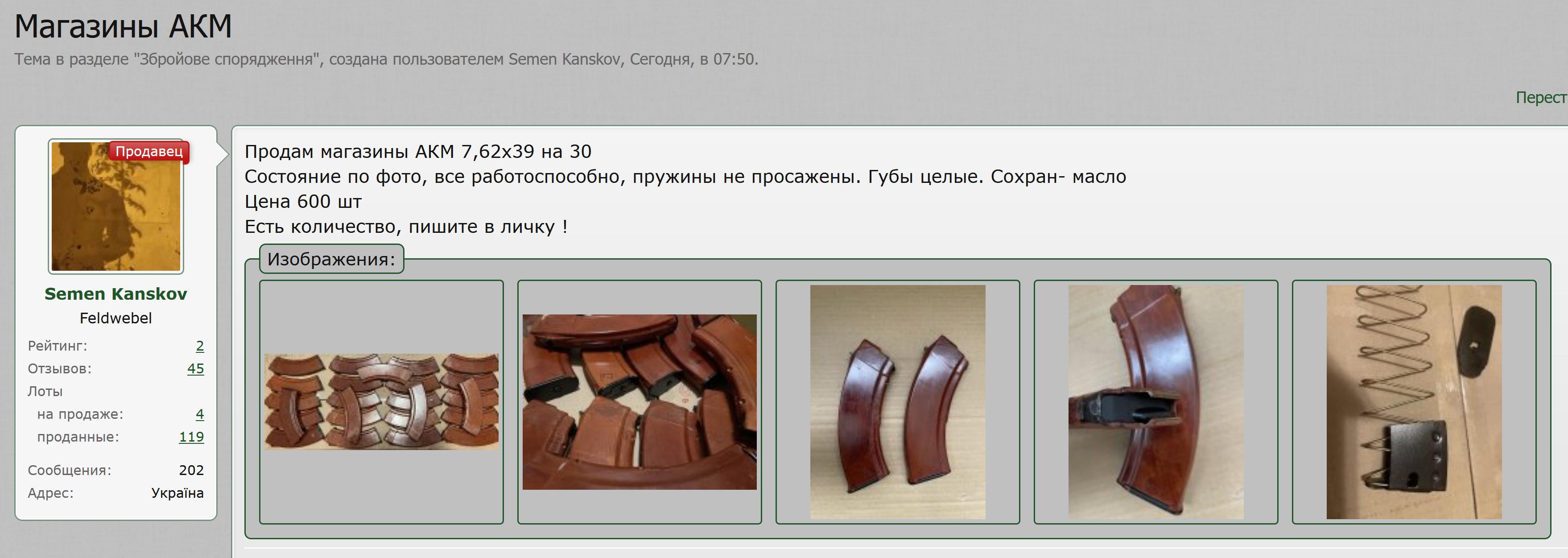 Продам магазины АКМ 7,62х39 на 30 Состояние по фото, все работоспособно, пружины не просажены. Губы целые. Сохран- масло Цена 600 грн. Есть количество, пишите в личку !