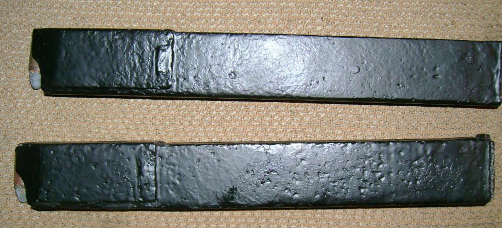 Два магазина ранних гладких. По 200 грн. Рабочие. Крепкие,вычищены, грунтованы и покрашены авто эмалью. Пружины от рожков ппс. На мой взгляд туговаты,при желании пару витков можно обрезать. Должны подойти под схп, проверить не на чем.
