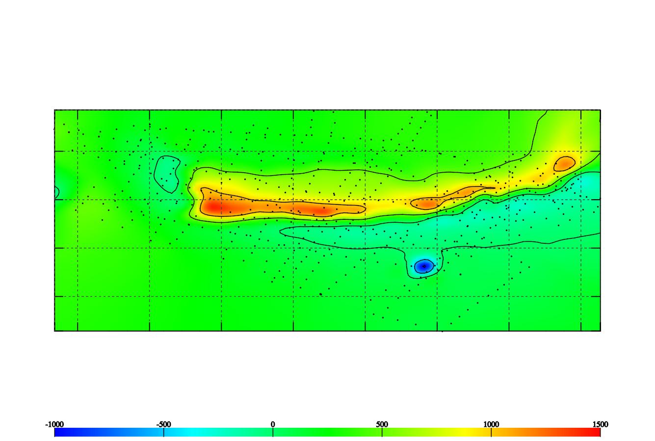 Всем добрый день, думал тема уже заглохла, а она оказывается живет и процветает. За прошедший сезон накопилось много материалов по съемке магнитометрами. Хочу поделиться результатами. 1. Наконец-то, практически закончили разработку софта для обработки съемок без всякого изврата с сюрфером (ушло около 3-х месяцев). Файлы измерений "Аномалии" напрямую конвертируются в проект и там обрабатываются. Рабочее название GeoMagix. Софт кроссплатформенный (Windows,Linux) и бесплатный. Можно создавать проекты, в которые могут увязываться несколько участков одновременно. Пять методов интерполяции результатов в регулярную сеть (крикинг итд). Три метода сглаживания, ручное редактирование данных, перепроецирование в UTM проекцию, экспорт карт в другие форматы. Встроенный калькулятор нормального магнитного поля по нескольким моделям. Предложения по софту приветствуются. На картинке главное окно программы (запущено по Ubunt -ой, есть версия под Windows). 2. На втором изображении - результаты съемки по техногенным объектам. Черные точки - точки измерений. Найденный объект - труба, глубина - больше 3 метров. Масштаб - 20 метров(расстояние между линиями координатной сетки). Всего было проведено 400 измерений. Прибор - "Аномалия-2" c оверхаузеровским датчиком и GPS привязкой. Снимали методом свободного хождения, по точкам измерения можно оценить густоту сети. Шаг изолиний - 500 нТ. Рядом проходила линия электропередачи. Упал сигнал шум, но измерениям это не мешало.