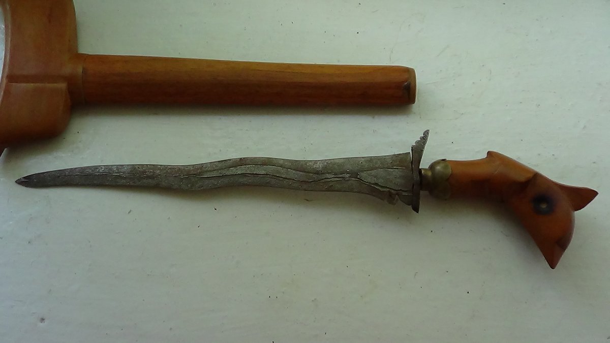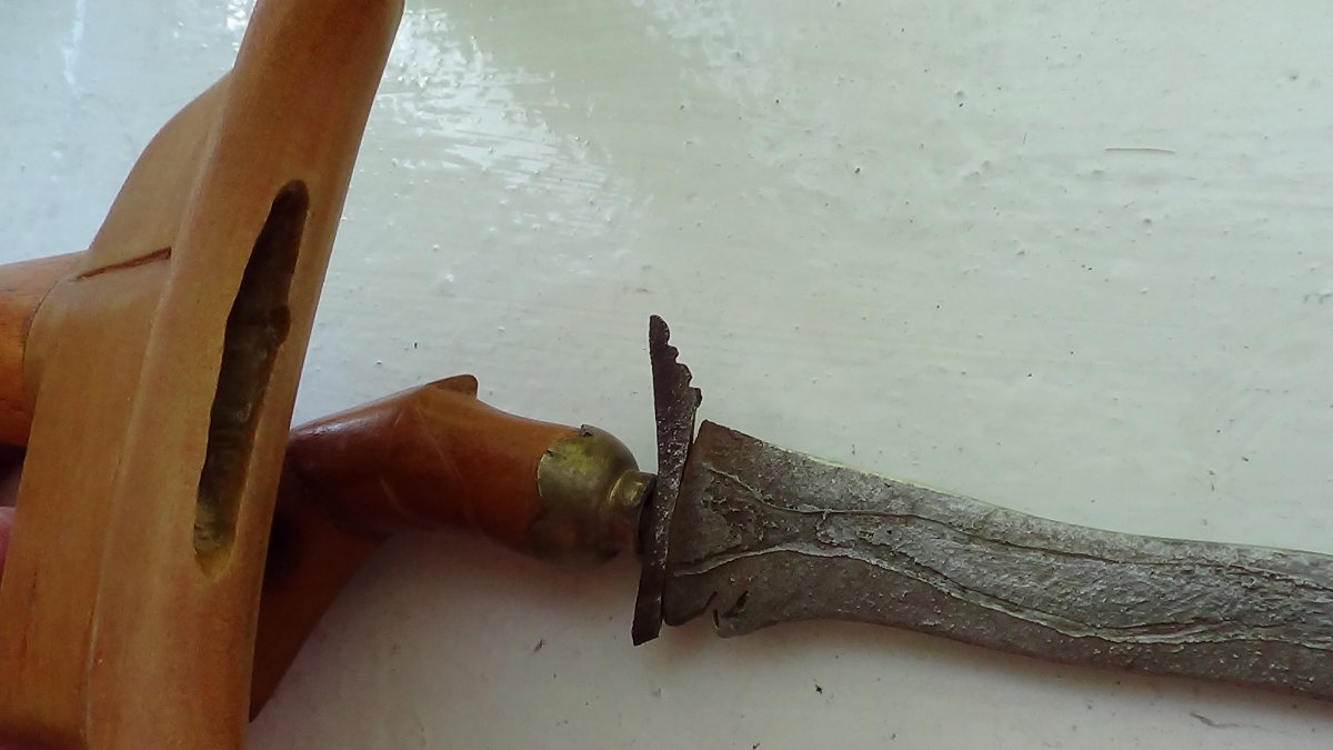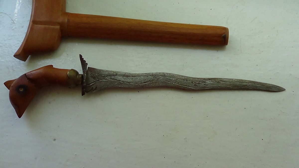 клинок- вроде мозаичный дамаск, утверждать не буду.