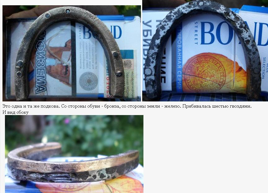 Это не крепление к металлу. Эта подкова двухслойная - бронза +чермет. Просто на Вашем предмете чернина отгнила. Где-то у меня валялась похожая, но с железом.