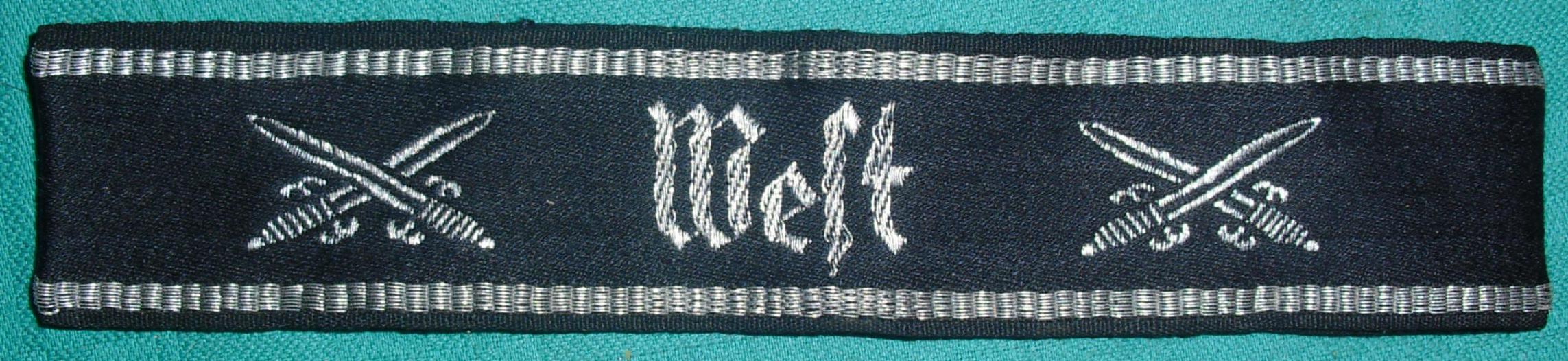 Welt это круто , могла бы быть дивизия СС по поддержанию общемирового порядка. А это West - лента союза ветеранов Кюфхойзер вроде бы у рядового состава просто шитые (50-60 евро), у руководства с серебряными нитями (100-110 ев)