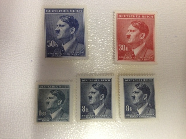1 )Марка выпущенная ко Дню Памяти Героев 3 )Марка Waffen SS 4)Марки из серии архитектура Германии,1940г 5)Почтовый блок с надпечаткой,марки без зубцов к 48 летию Гитлера,1937г.