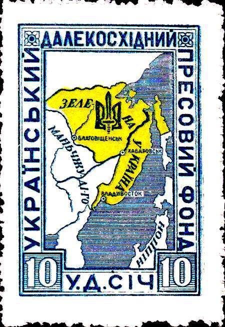 Марка з Зеленого Клину. Ймовірно, її видали в Маньчжурії, на території нинішнього Китаю, де діяли українські організації і зокрема "Далекосхідна Січ". 1936р.