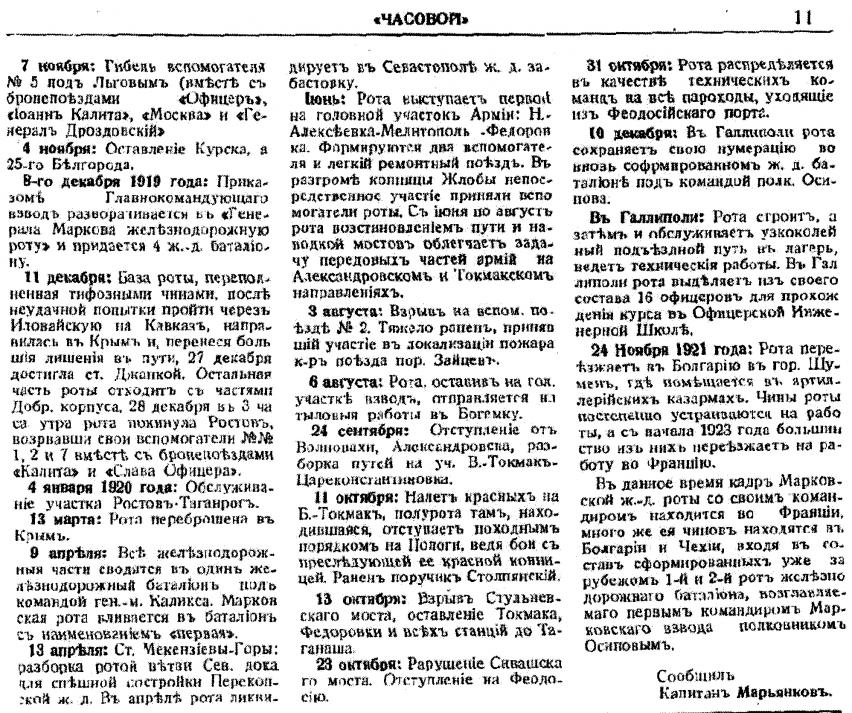 Василий Васильевич Орехов 17 (29) сентября 1896 - 6 июля 1990. Участник Первой мировой и Гражданской войн. Служил старшим офицером 1-й Железнодорожной роты генерала Маркова полка. В эмиграции был создателем и бессменным редактором, пожалуй, самого знаменитого и "старого" военного журнала "Часовой" (1929-1988). Кавалер таких престижных наград, как: Георгиевский крест 4 ст, Владимир 4 ст с мечами и бантом, Анны 4 ст. с надписью "За храбрость", Галлиполийского креста, Георгиевского оружия. Также награжден испанскими орденами Звезда Изабеллы и Крест за военные заслуги и рядом других российских и зарубежных орденов.