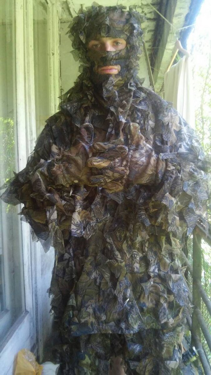 Продам маскировочный охотничий костюм,новый.В комлекте: сумка,кофта,штаны,перчатки,маска.Размер 54-56;на рост 190.Цена 850 грн.Отправлю почтой