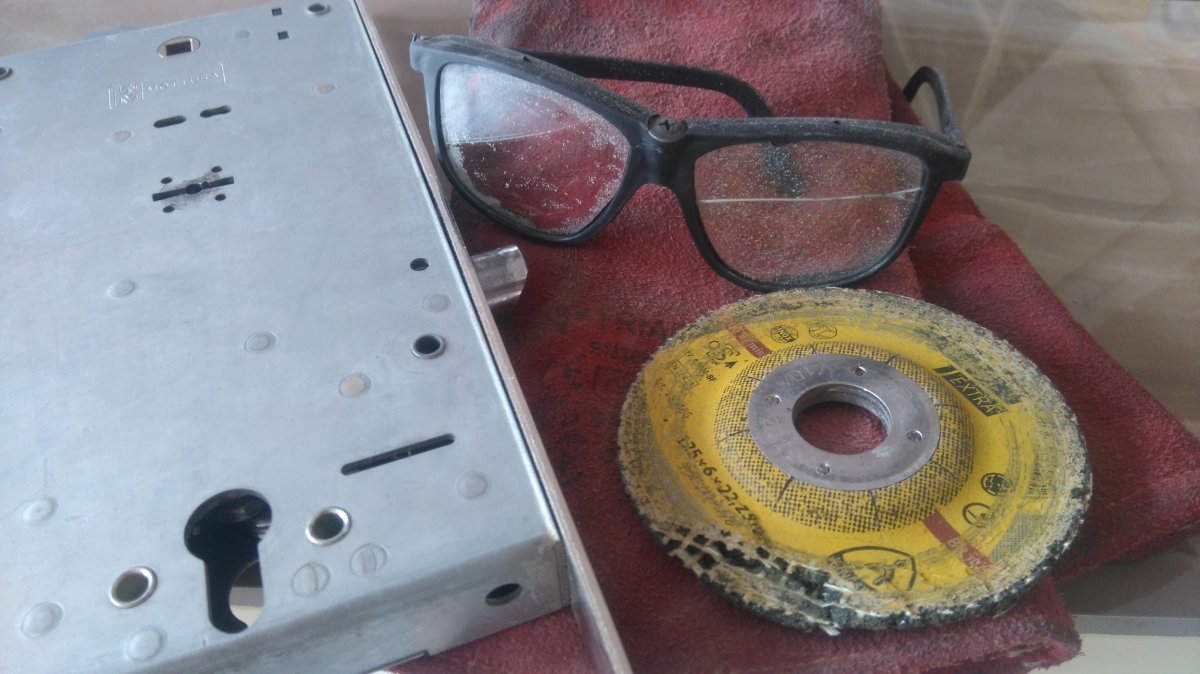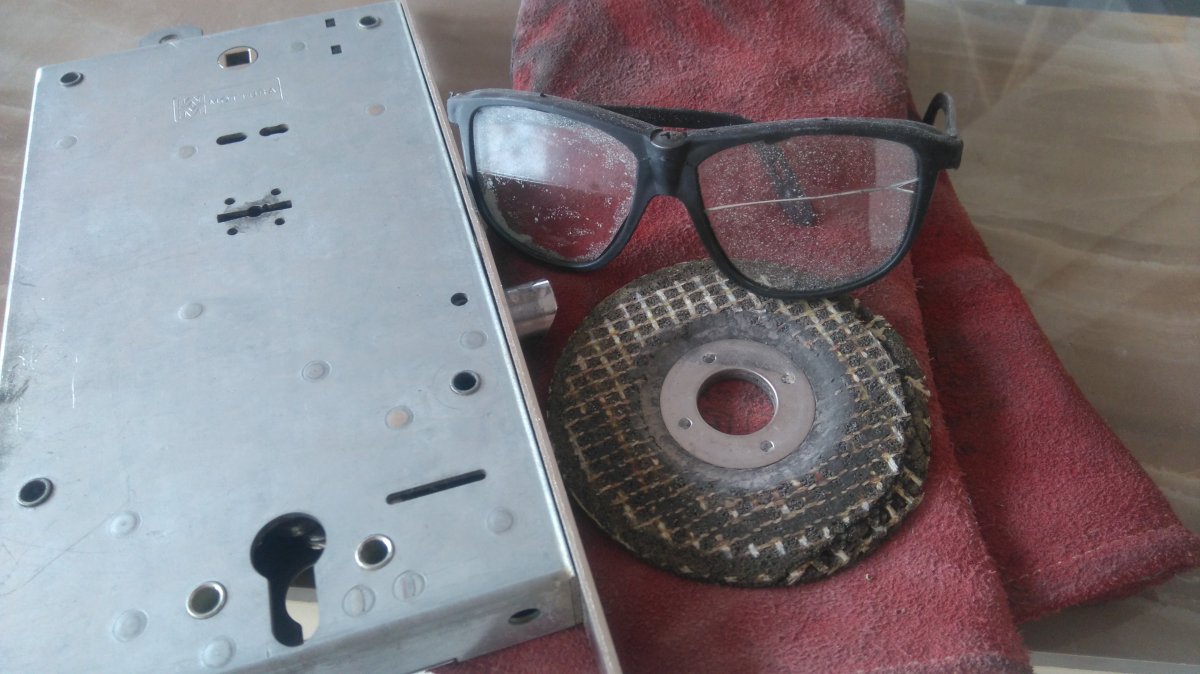 Не, не отрезал а шлифовал вырез под замок. Диск закусило в пропиле квадрат трубы и болгарку рвануло вверх пролетела в милиметре от щеки) с ув