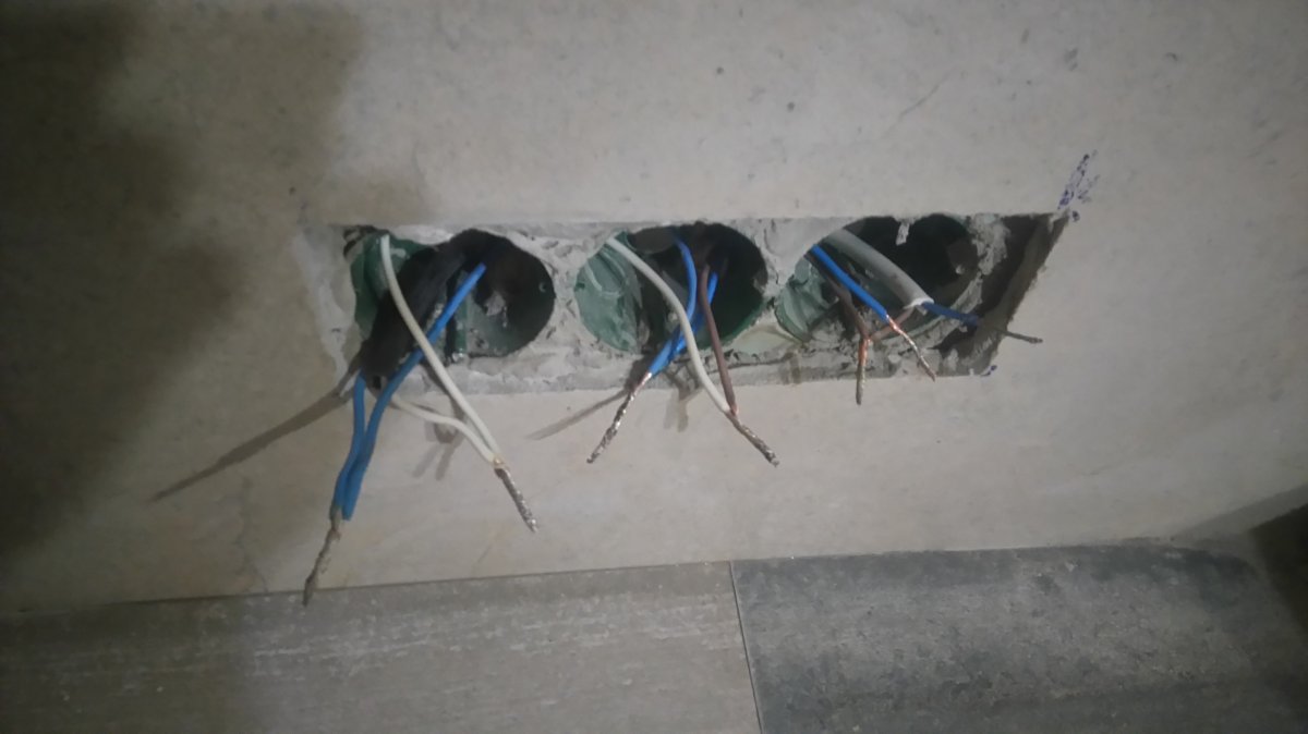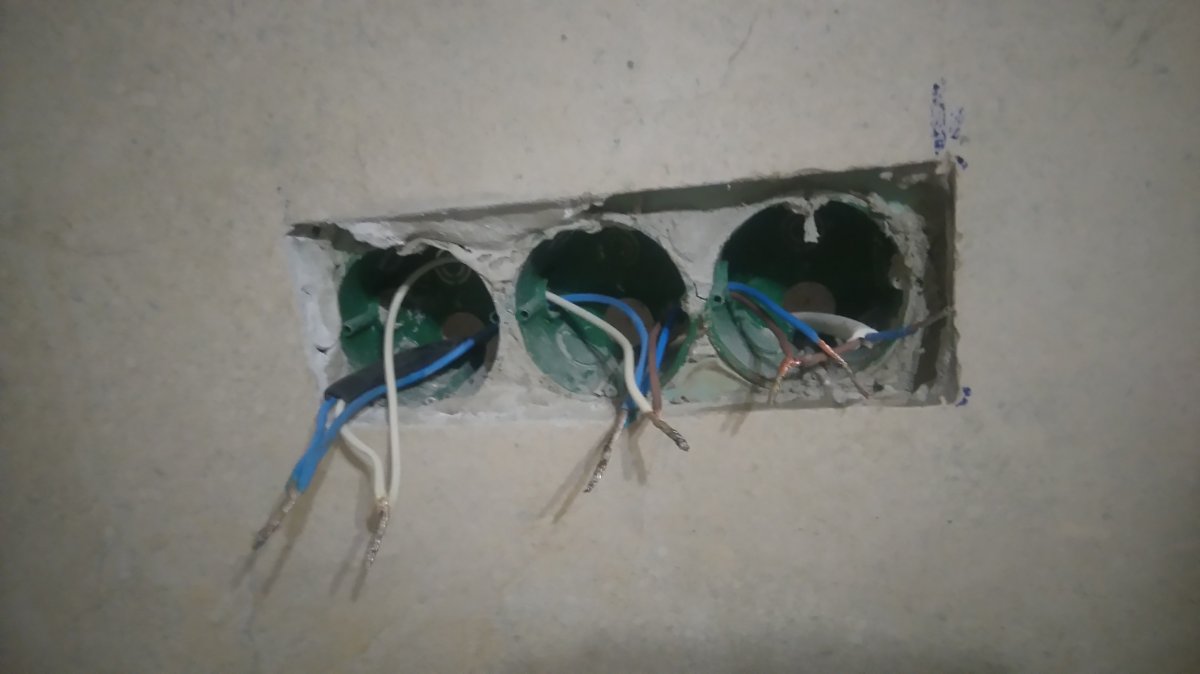 Показалось вам с утра) слева вход (розетка) , потом ещё одна розетка, и распайка под выключатель. Фаза на выключателе конечно будет изолироваться. С ув