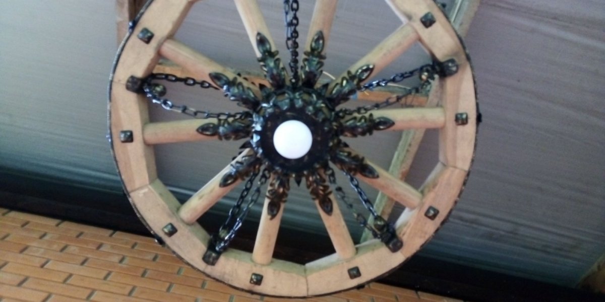 Ось . Камера телефона не передает всей краоты и структуры металла. Да и размер какойто маловатый. в реале колесо метр с фигом. Тяжеленая шо капец. Итак люстра.