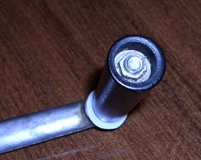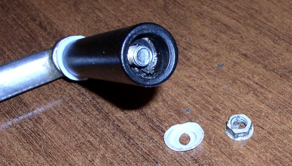 може комусь згодиться - ремонт ручки м'ясорубки. Відвалилася пластикова ручка - розвальцьований шток з часом вигризає алюміній. На допомогу прийшов меблевий гвинт з квадратним підшляпником. Садиться у отвір з натягом, з фторопласту зробив шайби у місця тертя ручки з металевими частинами - для легкості обертання.
