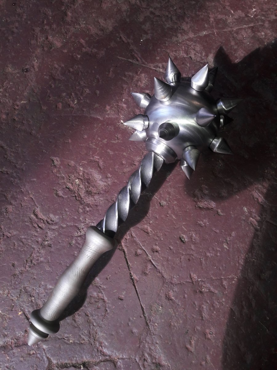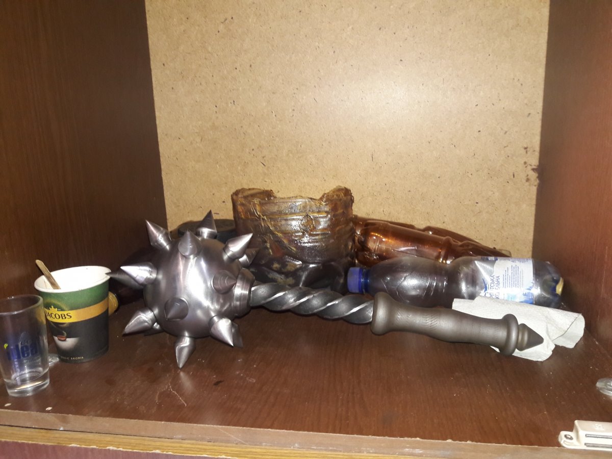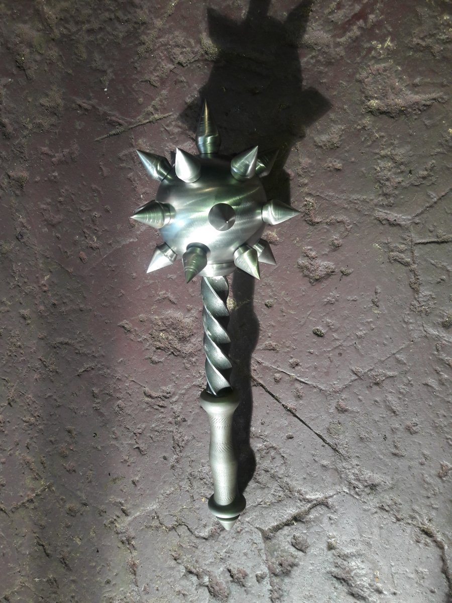 из пенополистирола, раскрашенной профи под нержавейку или чугуний.