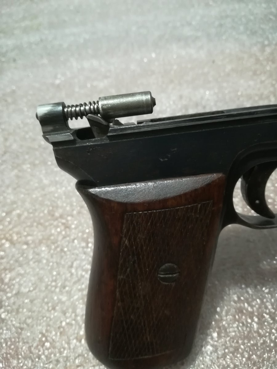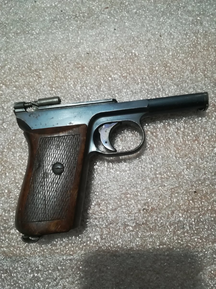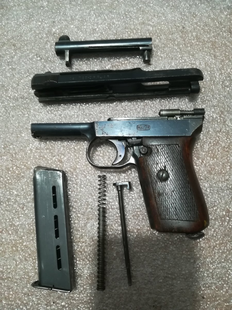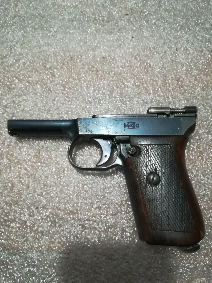 Здравствуйте. Помогите оценить ММГ пистолета Маузера, обр. 1914г. Макет в хорошем состоянии, на одном номере. Коструктивное решение по разборке - сборке, это нечто. Предмет не разбирается и не собирается, если в шахте нет магазина. Деактив: прорезан ствол и немного затворная рама. Нет отсечки, сточен ударник. Доки присутствуют. Вопросы предложения в личку.