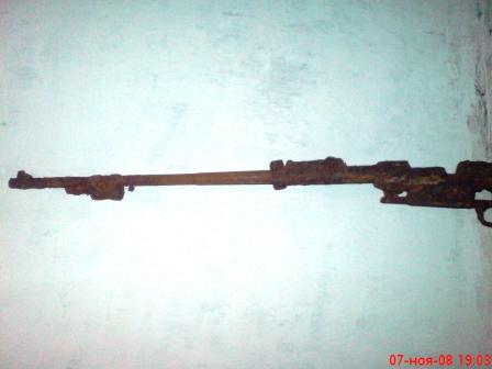 Ответ: Маузер 98 Может плохо видно, но сохран не очень хреновый. Ржа пожрала затвор, а так сталюка еще ого-го