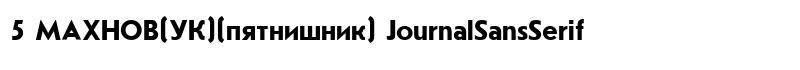 шрифт: Journal SansSerif Bold https://ofont.ru/view/551 "Шрифт разработан в КБ шрифтов «Полиграфмаш» в 1940–1956 годах (руководитель проекта — Анатолий Щукин) на основе шрифта Erbar-Grotesk фирмы Ludwig & Mayer 1929 года Якоба Эрбара и шрифта Metro фирмы Mergenthaler Linotype 1929 года Уильяма А. Двиггинса. Рубленый шрифт геометрического начертания. Для использования в текстовой и акцидентной типографике. В 2014 году дизайнер Олекса Волочай внес некоторые исправления в исходные цифровые данные и расширенный набор знаков. Гарнитура была перевыпущена в ParaType в 2014 году. Дизайнеры: Анатолий Щукин, Олекса Волочай Издатель: ParaType Литейная компания: ParaType Владелец дизайна: ParaType Дебют MyFonts: 8 декабря 2003 г."