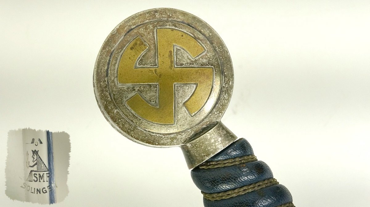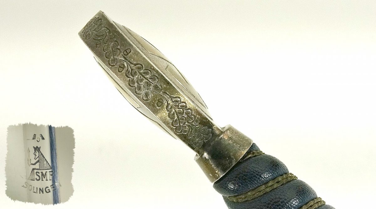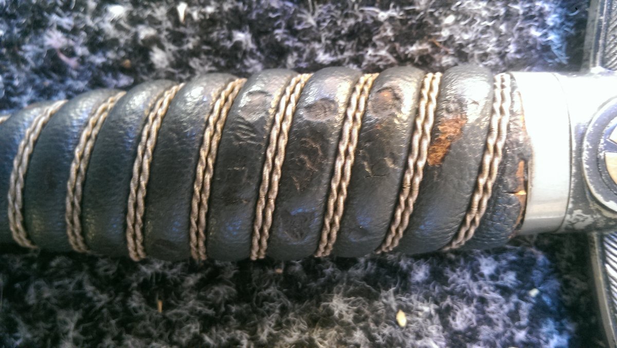 На мой взгляд оплётка рукояти поставлена новая. Она не гармонирует с общим состоянием предмета. Да и за 1300 евро можно без проблем за океаном купить оригинальный СМФ, в хорошем состоянии,оригинальном сборе и с подвесом!!! На предметах Саши хорошо видны рукояти и их общее состояние, это к вопросу задуматься!!! Я немного добавлю своих фот. С ув.....