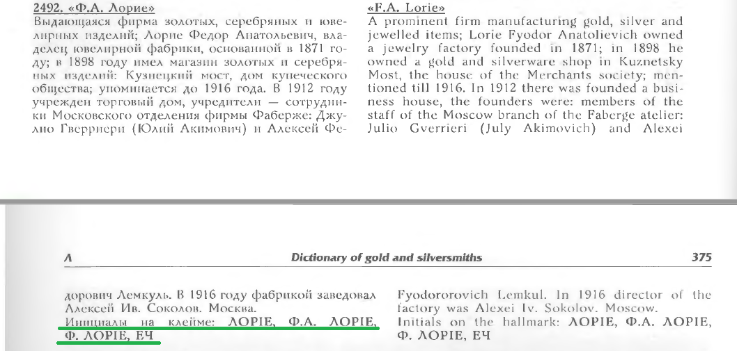 ок. додам інформації. тільки звідки ви взяли пробу 750 і дату з 1900 року ? )) по часу виготовлення - згідно клейма пробірного управління це 1908 - 1917 роки. на медалі "арена с морро" напис іде без "єр" - "арена съ морро ". це говорить про те , що вона була зроблена після реформи російської орфографії 1917 - 1918 років. офіційно реформа була оголошена 11 (24) травня 1917 року. https://ru.wikipedia.org/wiki/Реформа_русской_орфографии_1918_года тобто час виготовлення медалі - друга половина 1917 року. можна продивитись майстрів за цей час, але це буде не точно і на грані фантазії. під другим ракурсом на фото вже бачиться ВГ. можна також прошерстити московські газети за той період і з великою часткою вірогідності знайти її хазяїна. ) жаль, що уся інформація була на аверсі, а не на реверсі, як у призового жетона https://www.numismat.ru/au.shtml?au...=5&orderdirection=ASC&num=20&b=0&f=0&&page=49 вдалих торгів.
