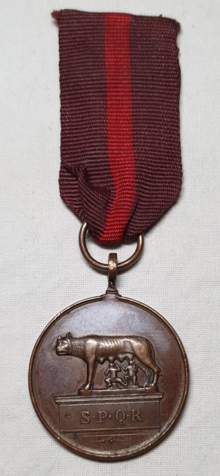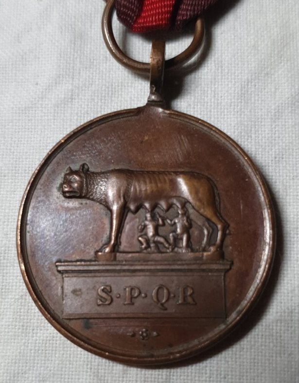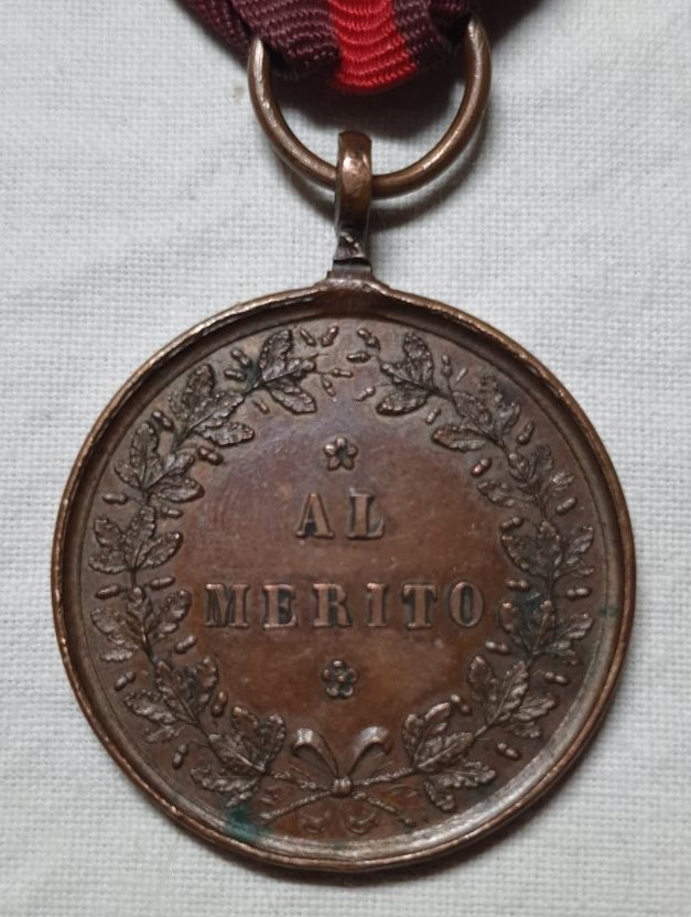 Нагороджувати нею почали з 1870 року. Стосовно періода точно не підкажу, припущу, що часів Віктора Еммануіла ІІІ. За посиланням https://www.deamoneta.com/auctions/view/929/829 пишуть, що ось ця періода Умберто І (відрізняється віл Вашої реверсом, але можливо це просто інший тип). Більше цікавить стрічка, у мережі усі медалі із такою стрічкою, як на фото вище, ваша відрізняється. Мені вона кольорами нагадує стрічку радянського ордена Вітчизняної війни 1 степені