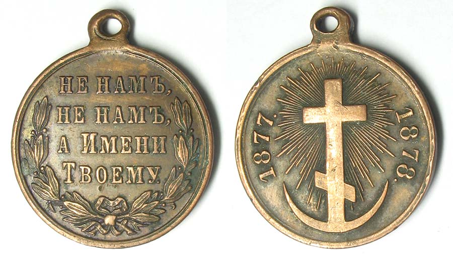Медаль «В память русско-турецкой войны 1877—1878» https://ru.wikipedia.org/wiki/Медаль_«В_память_русско-турецкой_войны_1877—1878» - Фото с инета? Тогда и примерная стоимость с инета - https://www.google.com.ua/#q=Медаль+«В+память+русско-турецкой+войны+1877—1878»+цена
