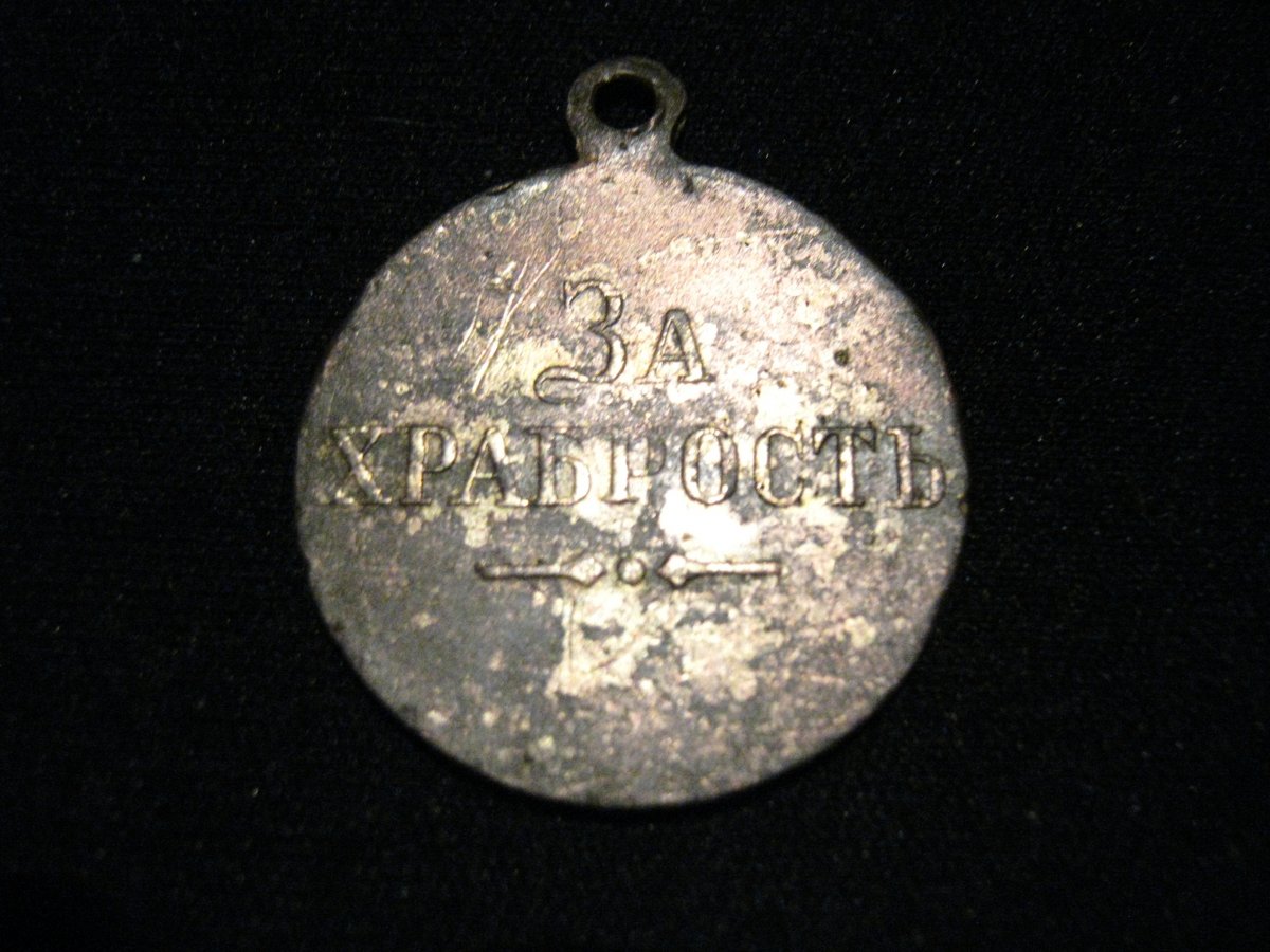 Копаная ? Сейчяс на та такие предметы реальную цену покажит только аукцион . Медаль "За храбрость" низшего достоинства. Она не имеет ни степени, ни номера, служила, как и в царское время, для награждения лиц, не имевших воинского звания и даже не принадлежащих к армейскому составу, но проявивших мужество и отвагу во время войны при совершении первого боевого подвига. Такими медалями награждались и женщины - в основном медицинские сестры. Использовалась эта награда, вероятно, и для гражданских лиц, принимавших участие в боевых операциях против вооруженных бандитов. Оформление ее лицевой стороны необычное - изображение Георгия Победоносца несколько иное, и, в противоположность степенным медалям, развернуто влево. Оборотная сторона оформлена подобно царским медалям, не имеющим степеней - та же двустрочная надпись - "За = храбрость" и под ней помещена концовка из двух фигурных прочерков с точкой между ними.