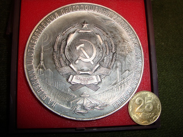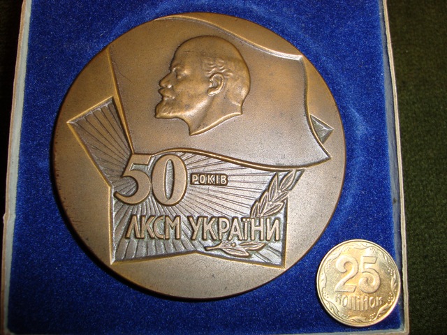 Медаль 50 ЛЕТ ЛКСМ Украины http://molotok.ru/item625726478_nastolnaya_medal_50_let_lksm_ukrainy.html опять же арифметика с ценой понятна на сколько делить.