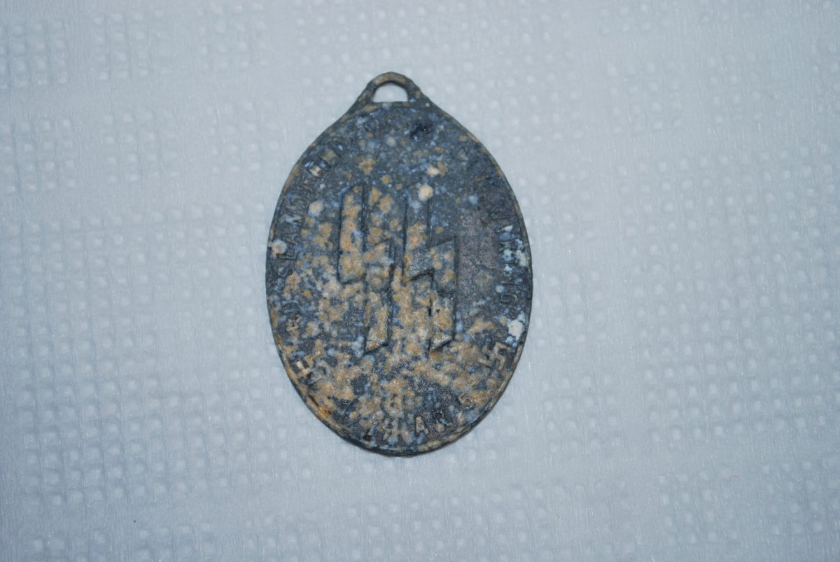 Даний медальйон був знайдений особисто мною в кінці 90-х років. Місце знаходження відповідає розташуванню підрозділів забезпечення танкової дивізії СС "Вікинг" при Корсунь-Шевченківській битві. Цікавить приблизна вартість на сьогоднішній день, і як вплине на ціну наявність або відсутність окислу на його поверхні.