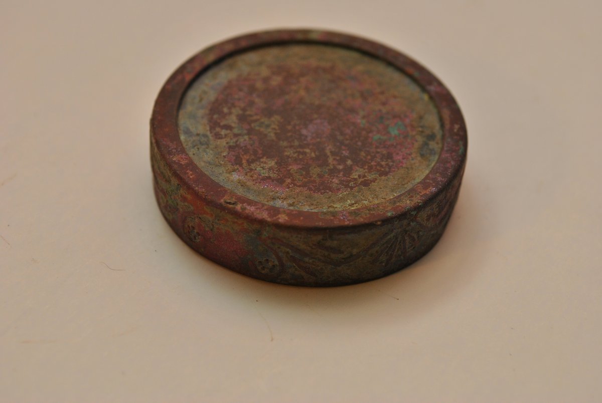 Вот такой артефакт сегодня копнул, медная крышечка с узорами, а внутри зеркальное стеклышко. Интересно что это может быть?