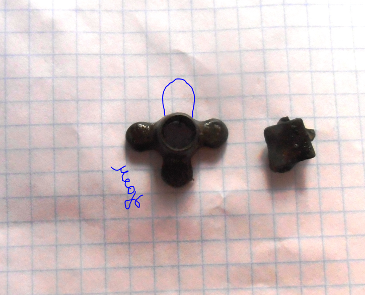 Здравствуйте уважаемые! Вот на старом месте у Днепра, где по скифам попадались наки-ходяки бронзяки ..в прошлой теме я показывал попался железный нак сарматов оч уставший а недавно ета приблуда,в очень жирной патине,чухонул о цемент,медная с обломаным лепестком,диаметр внутри 7 мм...фото не оф сжал для домонгола, написал ,отправил и ненайду,видать тупнул не в тему,удалили(Владлен я там,может кто месный там ,найдете маякните)...кто что скажет по медному цветку! С ув!
