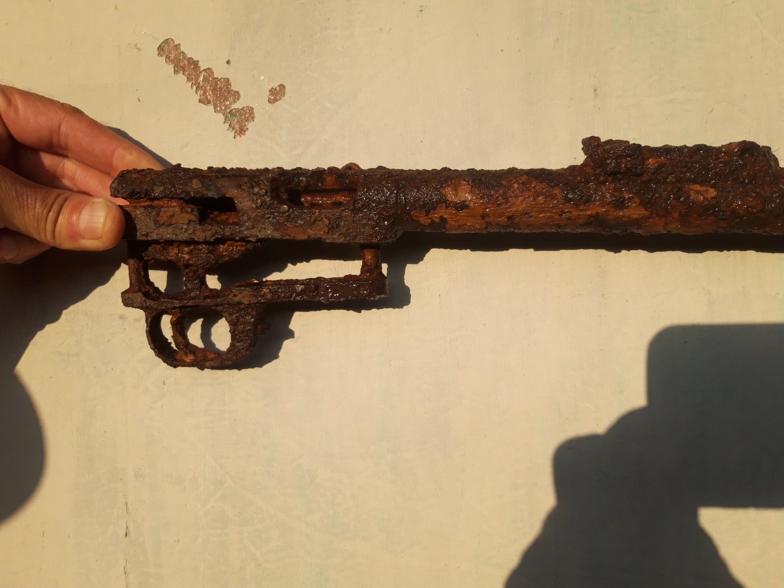 Почистіть металевою щіткою.А также середину ствола.Це дуже вплине на ціну.Затвор практично неможна знайти.Якщо будете розбивати лот-то куплю самий тильник.