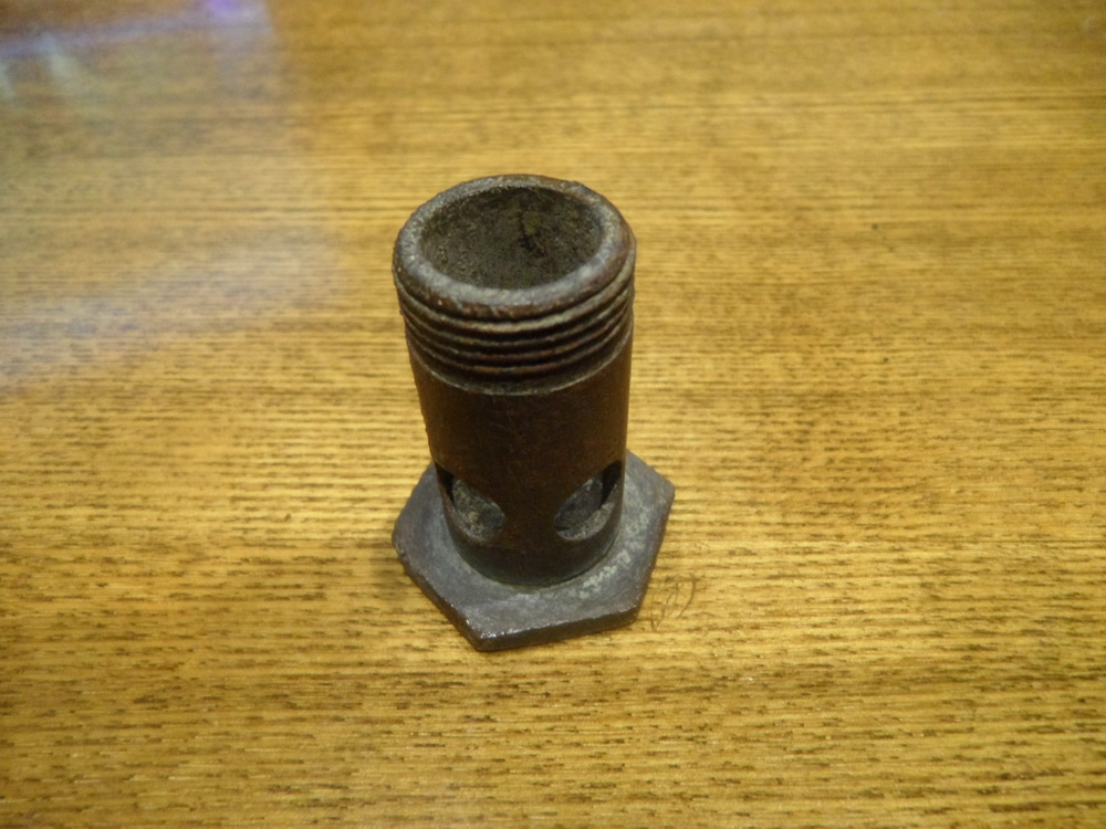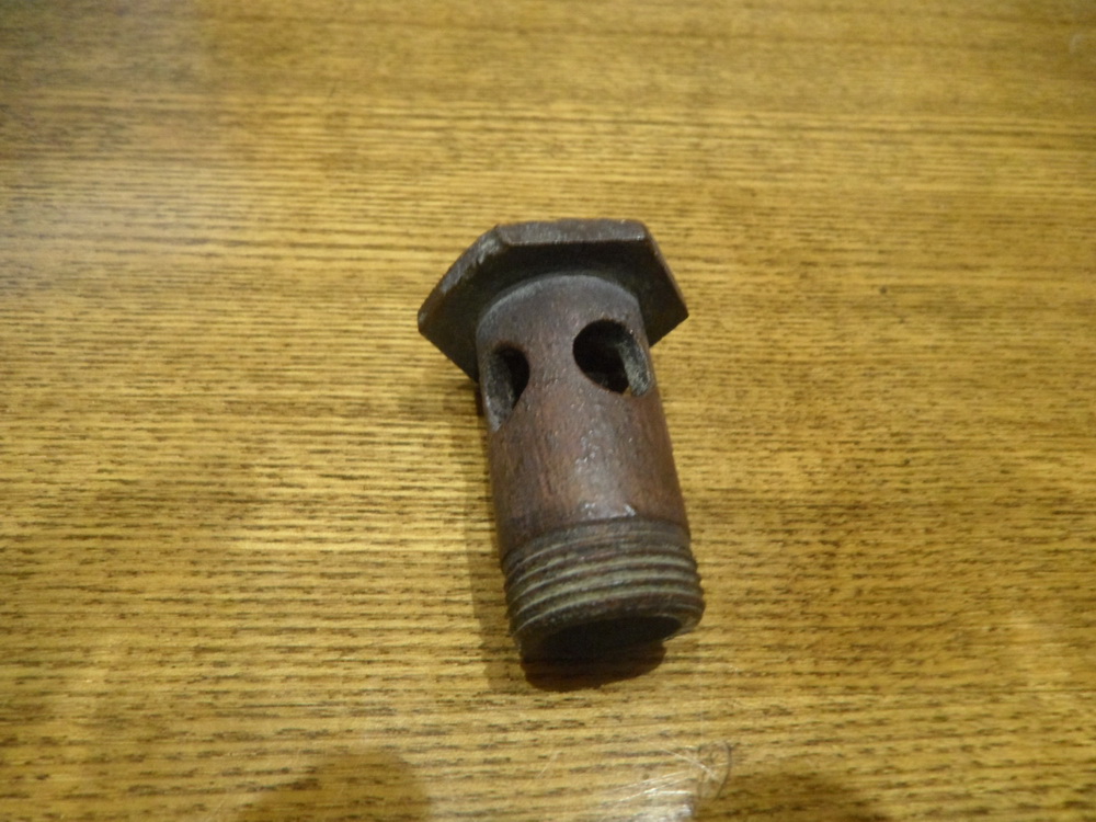 Болт, под так называемое, бандажное соединение. Преимущественно используются в системах гидравлики (системы: смазки, тормозная, топливная), так же возможно использование и в пневмосистемах. Пробка - скорее всего самопал, под самодельную флягу или канистру.