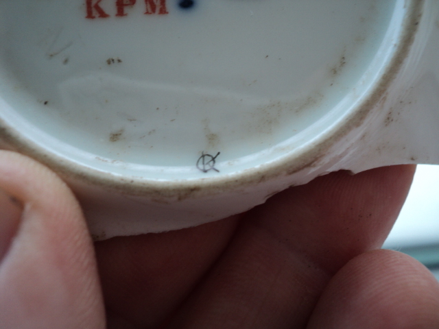 Слава, это не обязательно патриотика и не обязательно на ПМВ, может и на ВМВ. Это клеймо фарфорового завода КРМ (Königliche Porzellan-Manufaktur) Берлин. С ув.