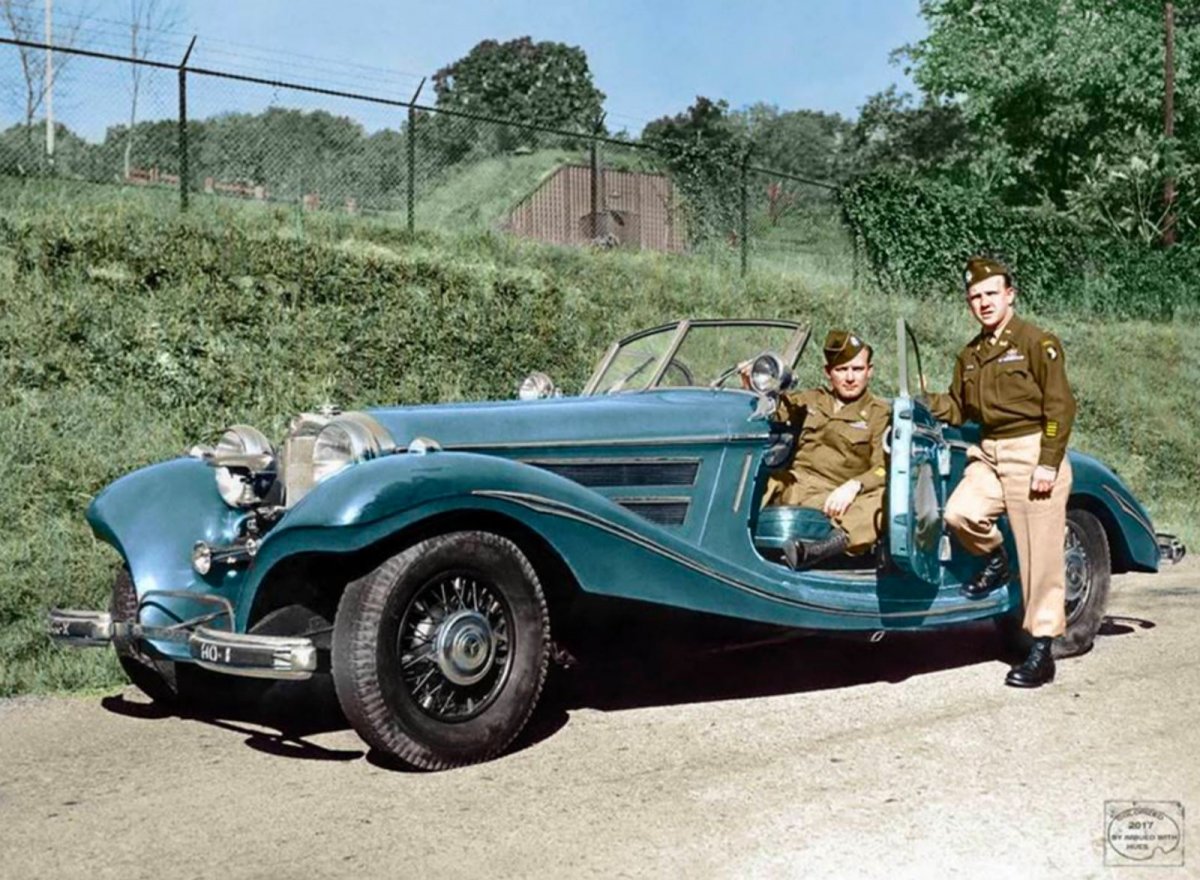 Американские солдаты позируют с трофейным Mercedes 540K, который принадлежал рейхсмаршалу Герману Герингу. 1945г.