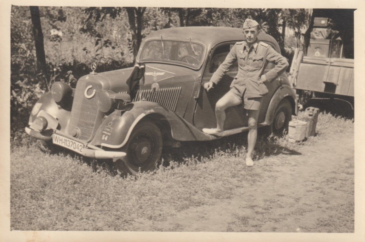 Mercedes-Benz Stabswagen der 76.ID mit Truppenkennzeichen in Artemowsk, nordlich Stalino, Ukraine, ca. 1941/42.