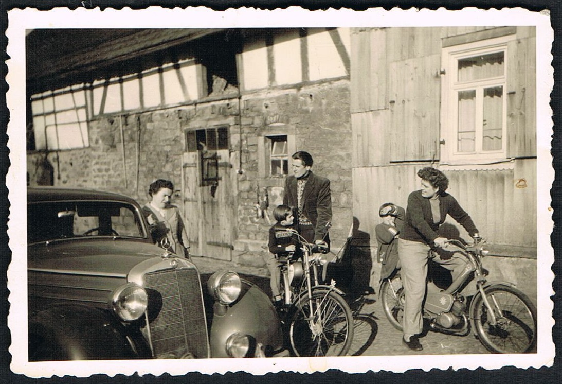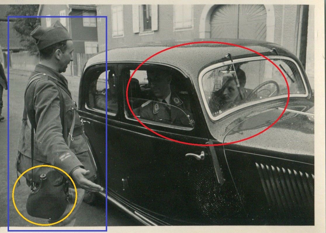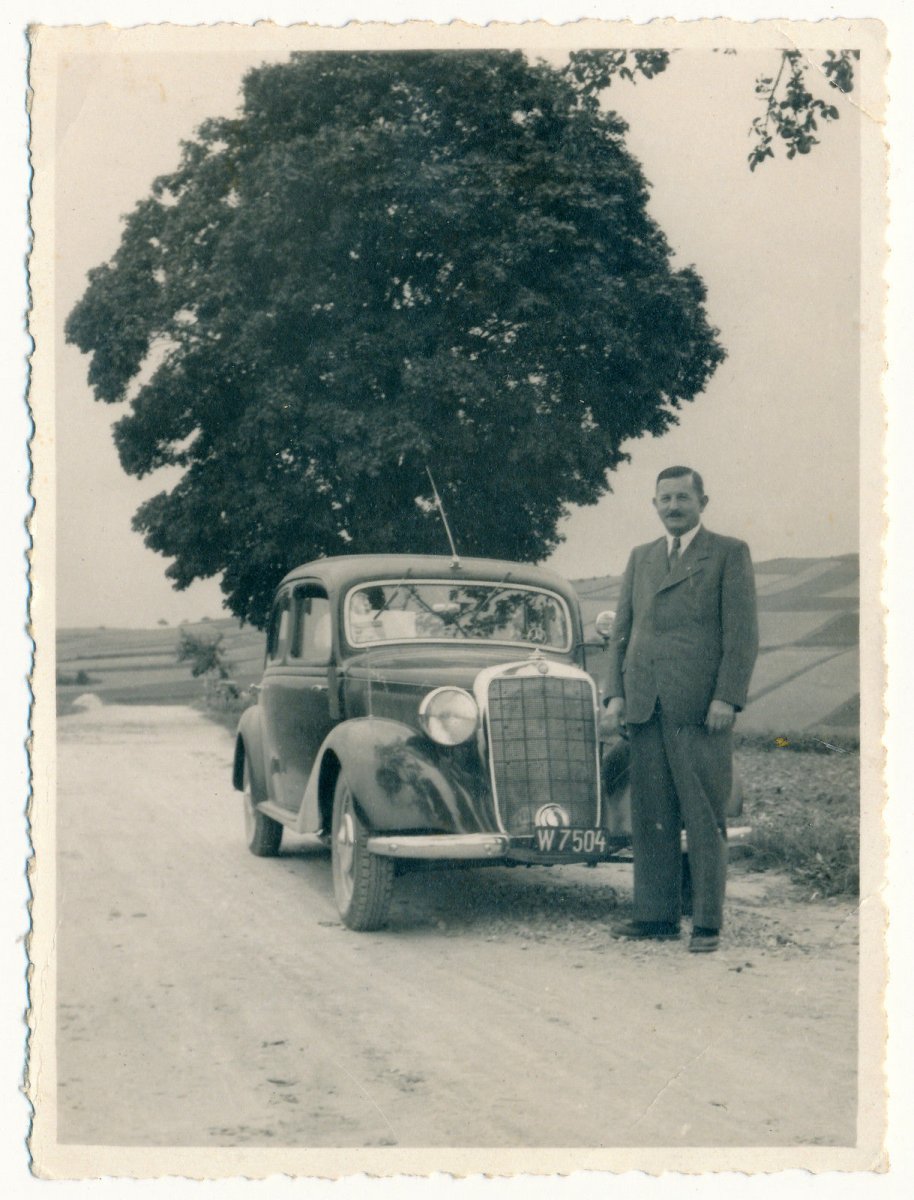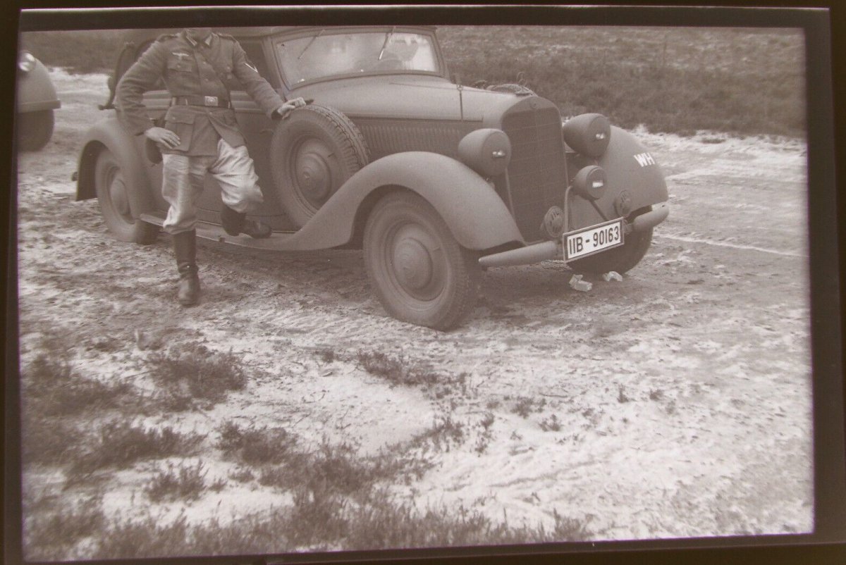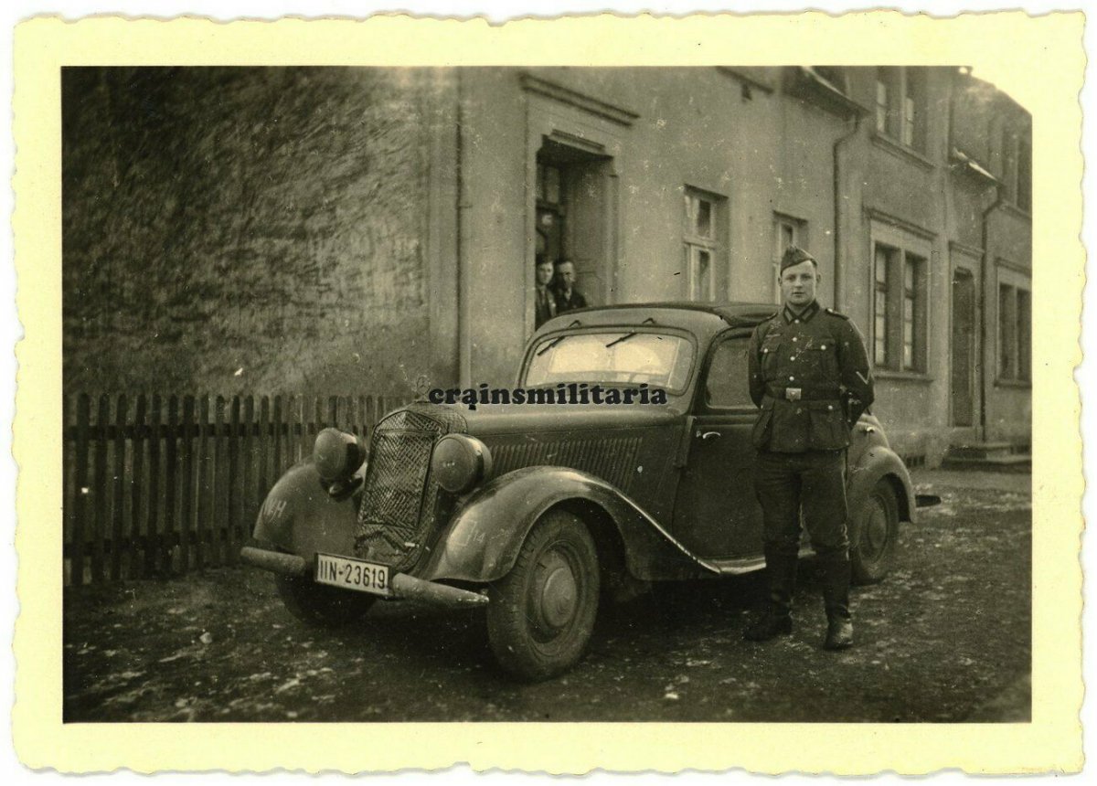 Soldat des 14./I.R.213 mit Mercedes-Benz Pkw am Quartier in Eppelborn, nordlich Saarbrücken, Herbst 1939.