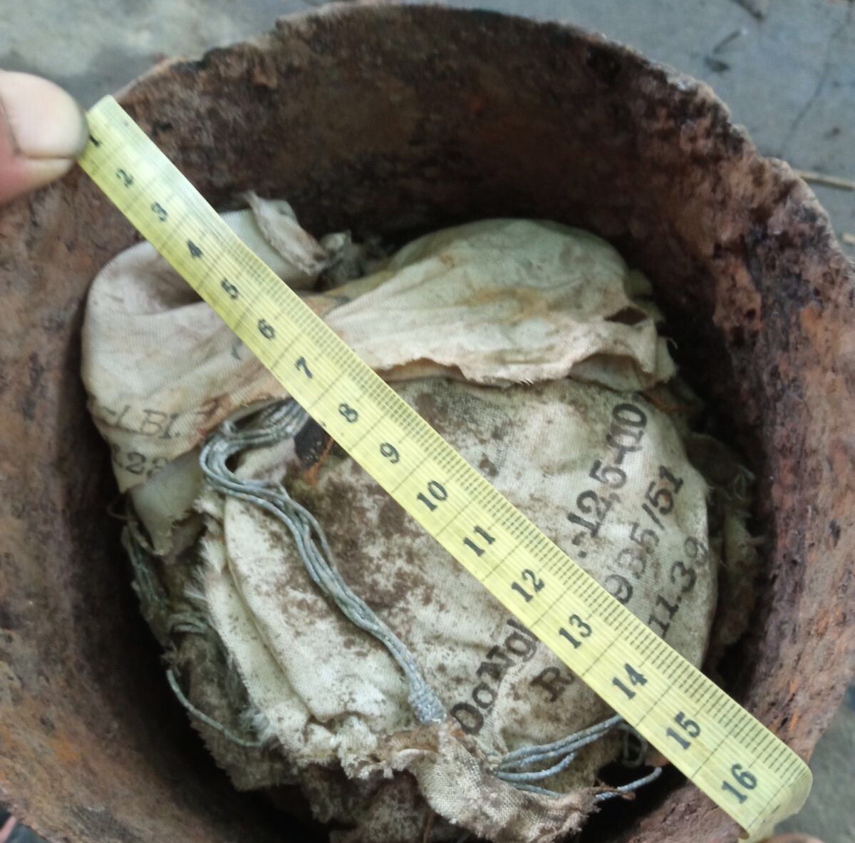 Кто-то латунь забрал, а содержимое попросту выбросил, чтобы не иметь проблем с законом.