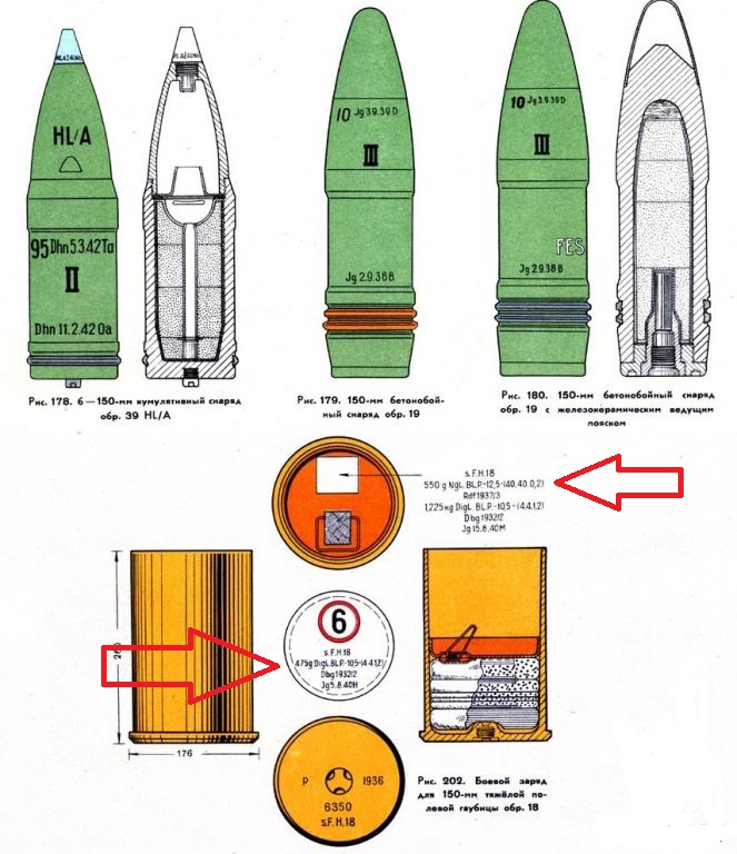 ...на период 1943-го навески порохОв 15 см "ШвересФельдГаубицэ 18" были несколько иные (как и сами порохА)