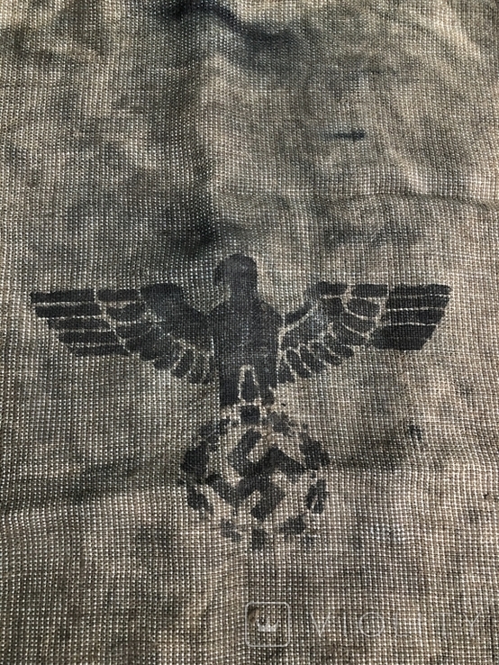 добры й вечер. Нужна помощь по продуктовому мешку вермахта. Интересует печать орла.а именно смущает орнамент вокруг свастики, рисунок недоштампованый совсем. Может орнамент наносился по разному на мешок не знаю. Цвет краски на печати не яркий выцвевший.