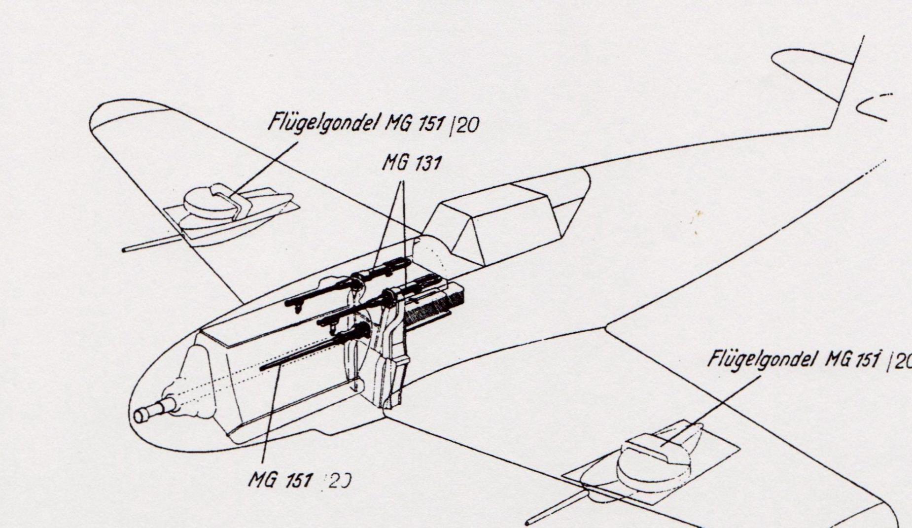 Re: Messerschmitt Bf-109 Ausf. "G" MG 131. Пулял он - 900 выст/мин. Начальные скорости снарядов: для Sprenggranate -750 м/сек. Вес патрона - 0,074 кг. Вес снаряда - 0,034 кг. для Panzergranate - 710 м/сек. Вес патрона - 0,0785 кг. Вес снаряда - 0,0385 кг. для Brandsprenggranate - 750 м/сек. Вес патрона - 0,074 кг. Вес снаряда - 0,034 кг. Вес гильзы - 0,031 кг. На Bf 109 G-6/U4, K-4 была МК 108. Здесь Вы темой ошиблись. Масса снаряда к МК 108 - 0,33 кг. Вес патрона к МК 108 - 0,47 кг. Начальная скорость снаряда - 525 м/сек. Выстреливала МК 108 - 600 выст/мин. Вам "брюхо" чего надо? По модификациям есть отличия.