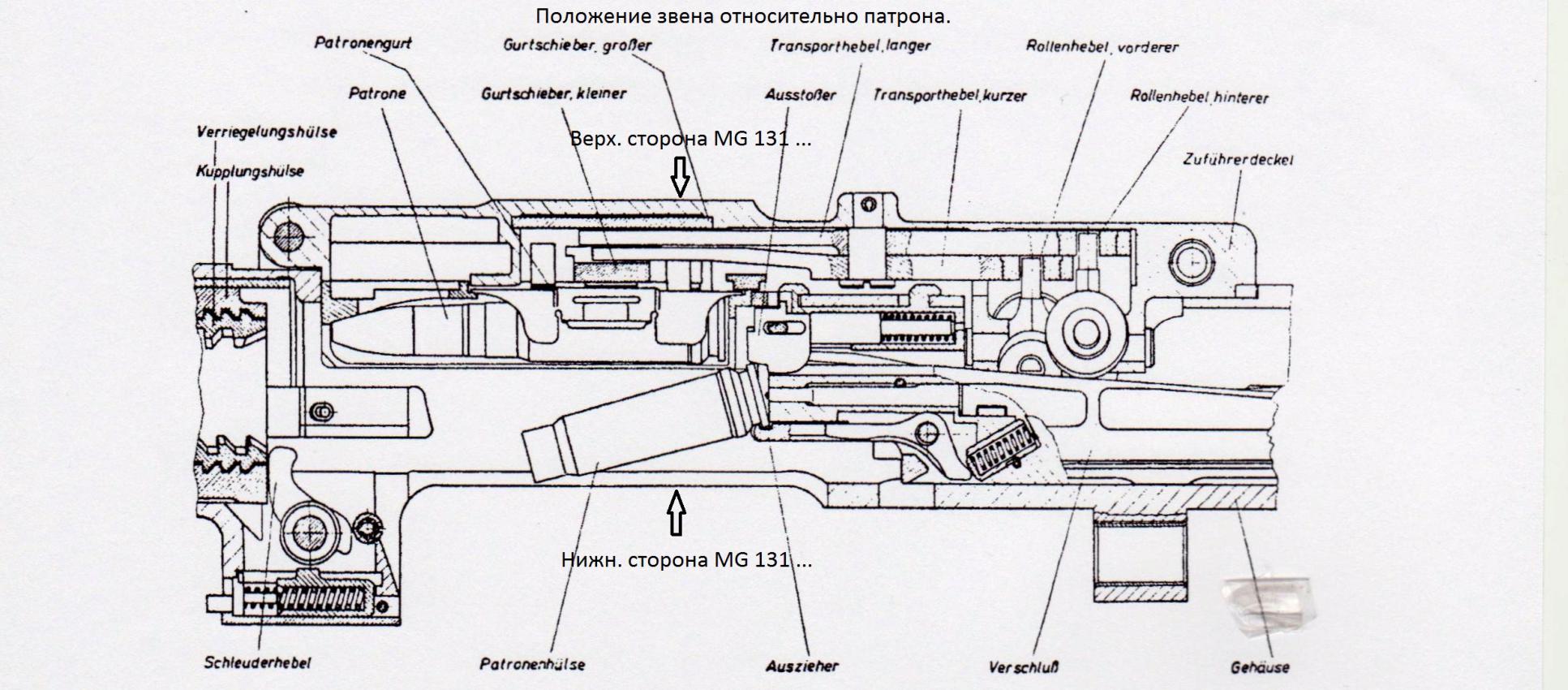 Re: Messerschmitt Bf-109 Ausf. "G" MG 131. Калибр по нарезам 13.4 мм. Известно несколько исполнений пулемета, мне приходилось читать об 8 исполнениях MG 131. На Bf 109 G-6: MG 131 E 2 - левый борт. MG 131 F 2 - правый борт. Ленты применяли распадающегося типа. Такие ленты собирались без штифтов. Вообще для любого MG 131 ленты шли двух типов, но для Bf 109 G-6 - распадающегося типа. Длинна ленты на 300 патронов - 663.3 мм. Отличие MG 131 от MG 17 - отсутствие воздушной системы для перезарядки пулеметов. Перезарядка и спуск на MG 131 E-2, F-2 - электрические системы. Вообще системы спуска иперезарядки для MG 131 были различные. Когда на фотографиях мы видим правый борт Bf 109 G-6 и заправочный воздушный лючок, это может означать следующие: 1. Под лючком нет ничего. 2. Перед нами Bf 109 G-6/U4. Для летчика спуск оружия оставался привычным: 1. Кнопка А - пара MG 131. 2. Кнопка В - Мотор MG 151/20. Если стояли консольные MG 151/20, тогда: 1. Кнопка А - пара MG 131 и Мотор MG 151/20 (перекидывалась эл.схема). 2. Кнопка В - консольные MG 151/20. Если Kameraden смотрели фильм "Красные хвосты", тогда они могут увидеть пример правильного показа работы оружия для Bf 109 G-6/R6. Кино конечно, но верно.