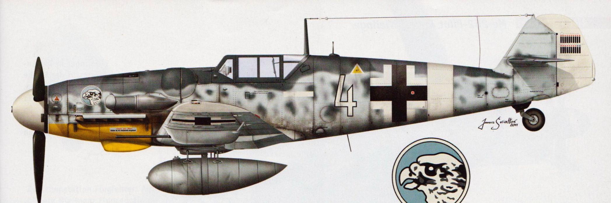 Re: Messerschmitt Bf-109 Ausf. "G" К разговору о шильдах на Bf 109. Есть у кого-нибудь фотографии Bf 109 G-1, G-2, G-4, на которых видно треугольный шильд - Werknummernschild? На поздних Bf 109 G... такой треугольный шильд стоял на правой стороне фюзеляжа в районе 8-ой секции. Это был стальной шильд на трех заклепках, внутри были набиты цифры номера самолета.