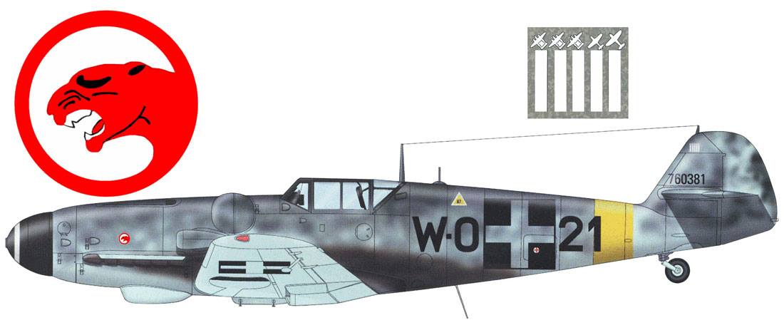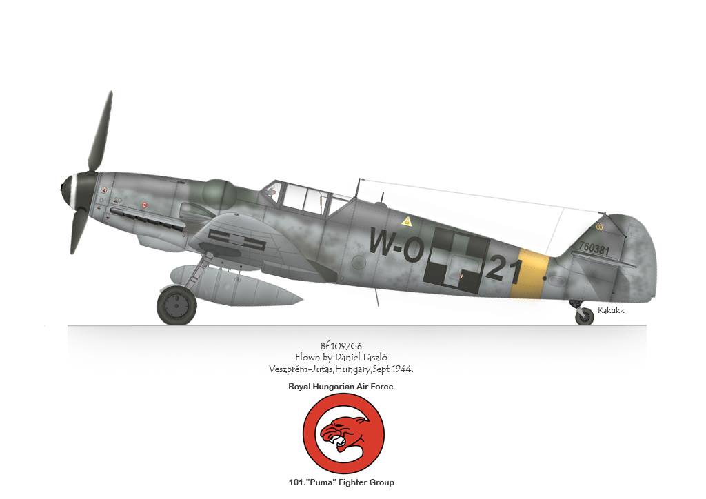 Messerschmitt Bf 109 G-6 W.Nr. 760381 WO+21. Hadnagy László Dániel,101/I "Puma" Sq, Veszprém, June1944.