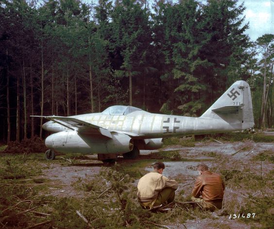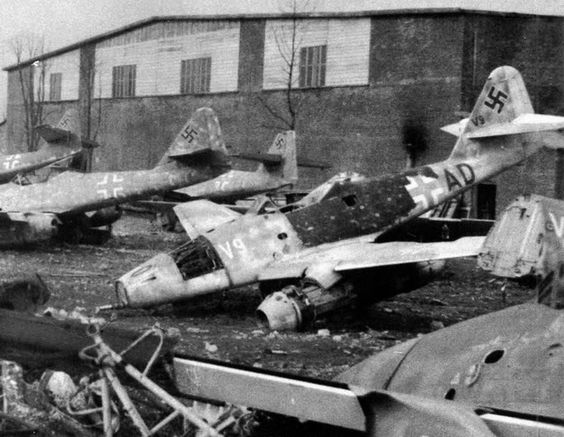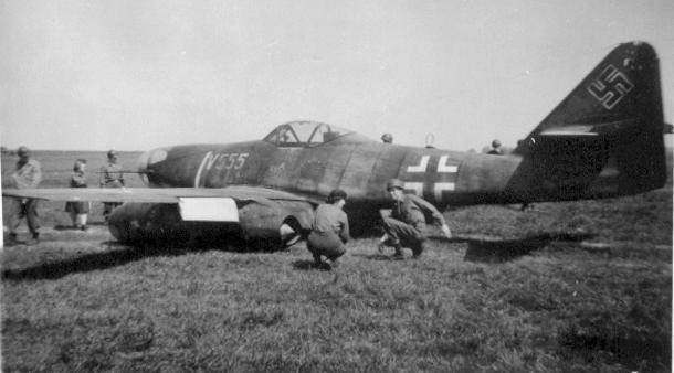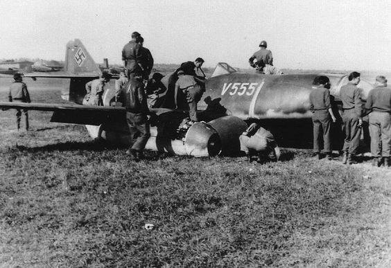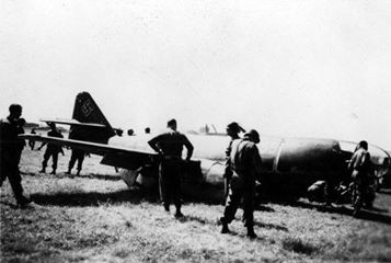 Fürth Atzenhof http://www.mil-airfields.de/deutschland/flugplatz-fuerth-atzenhof.htm Der Düsenjäger Messerschmitt Me 262 A-1a, aufgenommen am Flughafen Atzenhof, von Schaulustigen umringt 25 Juli 1944