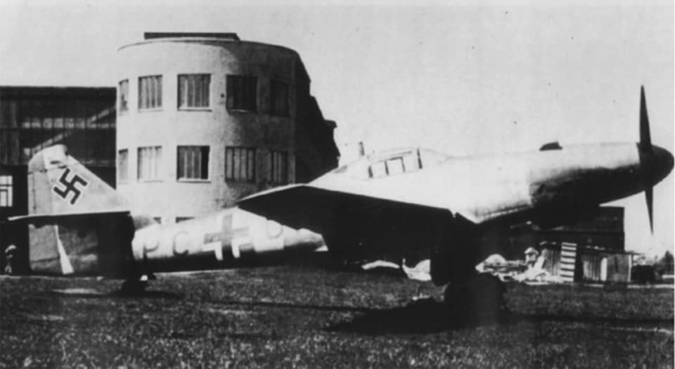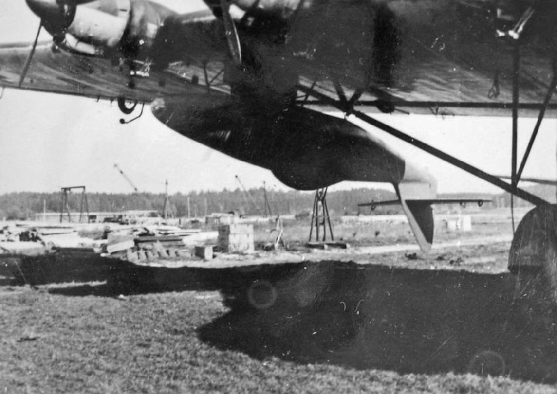4й опытный фюзеляж 262 под крылом Ме323, аэродром Obertraubling. Для сброса в воздухе. Аэродинамические испытания.