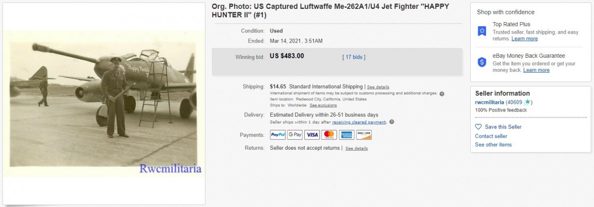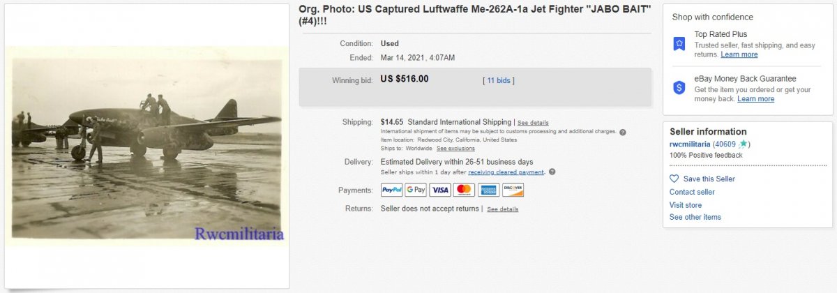 1-4) US Captured Luftwaffe Me-262A1/U4 Jet Fighter "HAPPY HUNTER II" 5-13) US Captured Luftwaffe Me-262A-1a Jet Fighter "JABO BAIT"