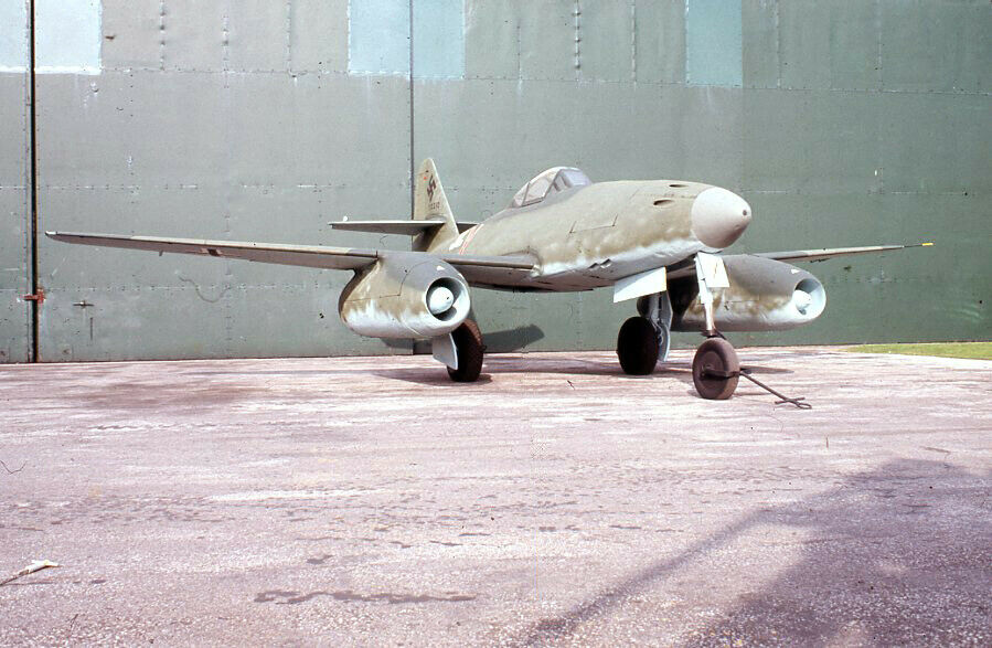 Me262A W.Nr. 112372 (8482M) at RAF Museum Hendon in 1976. https://www.rafmuseum.org.uk/docume...p_QjWRBy-IFNNgADosP9pgdQ_ALrHz65ToJORXK_-D16g