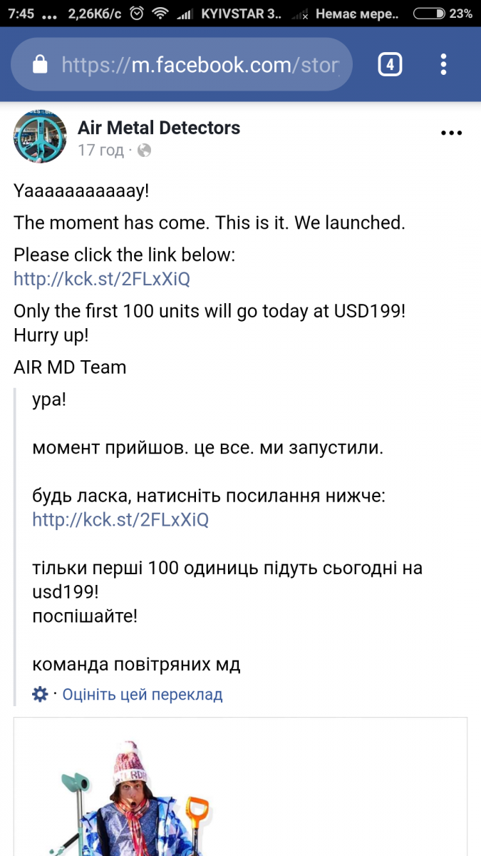«То, о чем так долго говорили большевики, свершилось» Убийца всех приборов вышел на тропу войны!!!! Выбрасывайте свои "деусы"! Увидел случайно в фейсбуке что проект с смартфонодетектором запустили, продают первых 100 штук. Правда посмотрел ихнюю страничку и сообщество в соцсети - понял что они ориентированы сугубо на импорт .....исключительно на иностранцев.... ещё-бы наши могут и морду набить))))) Видео здесь - https://www.kickstarter.com/project...9An5KAWOZkM-4OCrEzkBoN6MrLxm_Tk-hB3ygpwNVAwTA