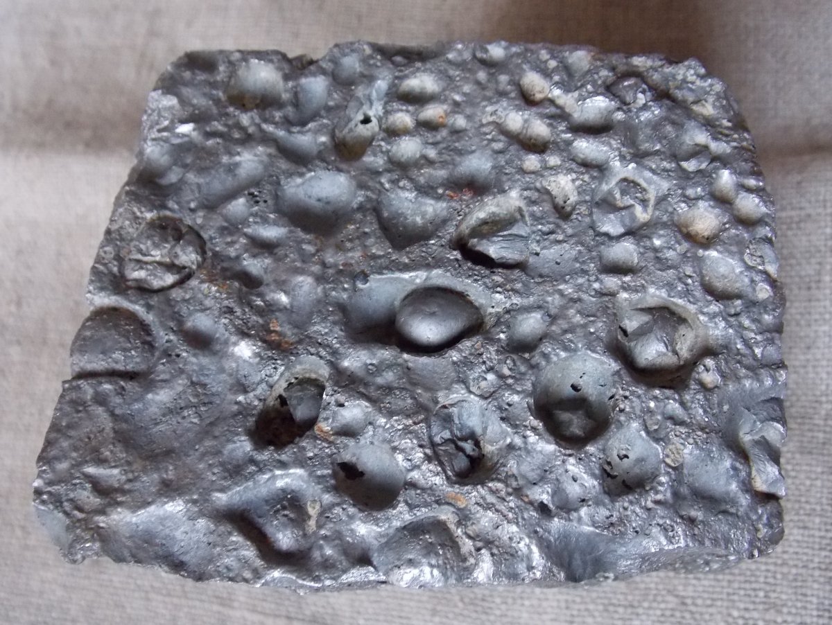 6:Излом чаще всего серого цвета,на котором иногда заметны маленькие(размером около 1 мм) шарики хондры.